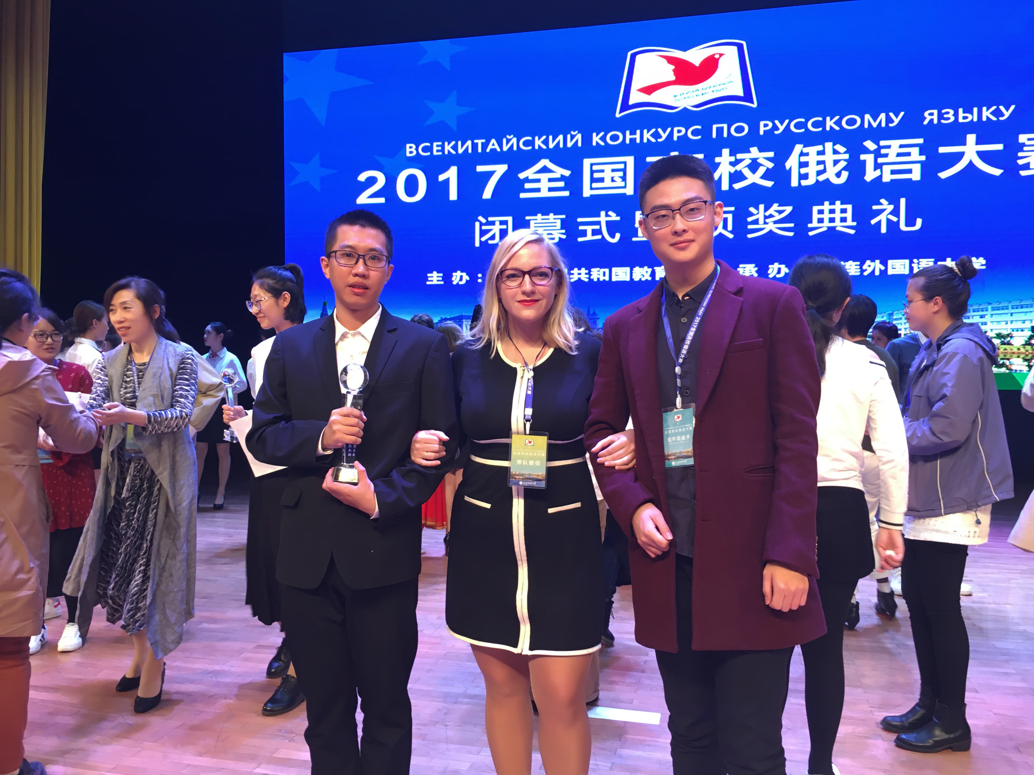 10月15日至16日,由教育部国际合作与交流司主办、大连外国语大学承办的2017全国高校俄语大赛在大连外国语大学举行,来自全国138所高校的350余名选手参加了本次比赛。大赛分设低年级组、高年级组和研究生组,经过两天的激烈角逐,厦门大学代表队在外籍教师Ирина Николаевна的带领下凭借出色发挥,喜获佳绩。2016级本科生马权政荣获低年级组二等奖,总成绩位列低年级组第六名;2017级研究生余炯辉荣获研究生组三等奖,总成绩位列研究生组第十名。