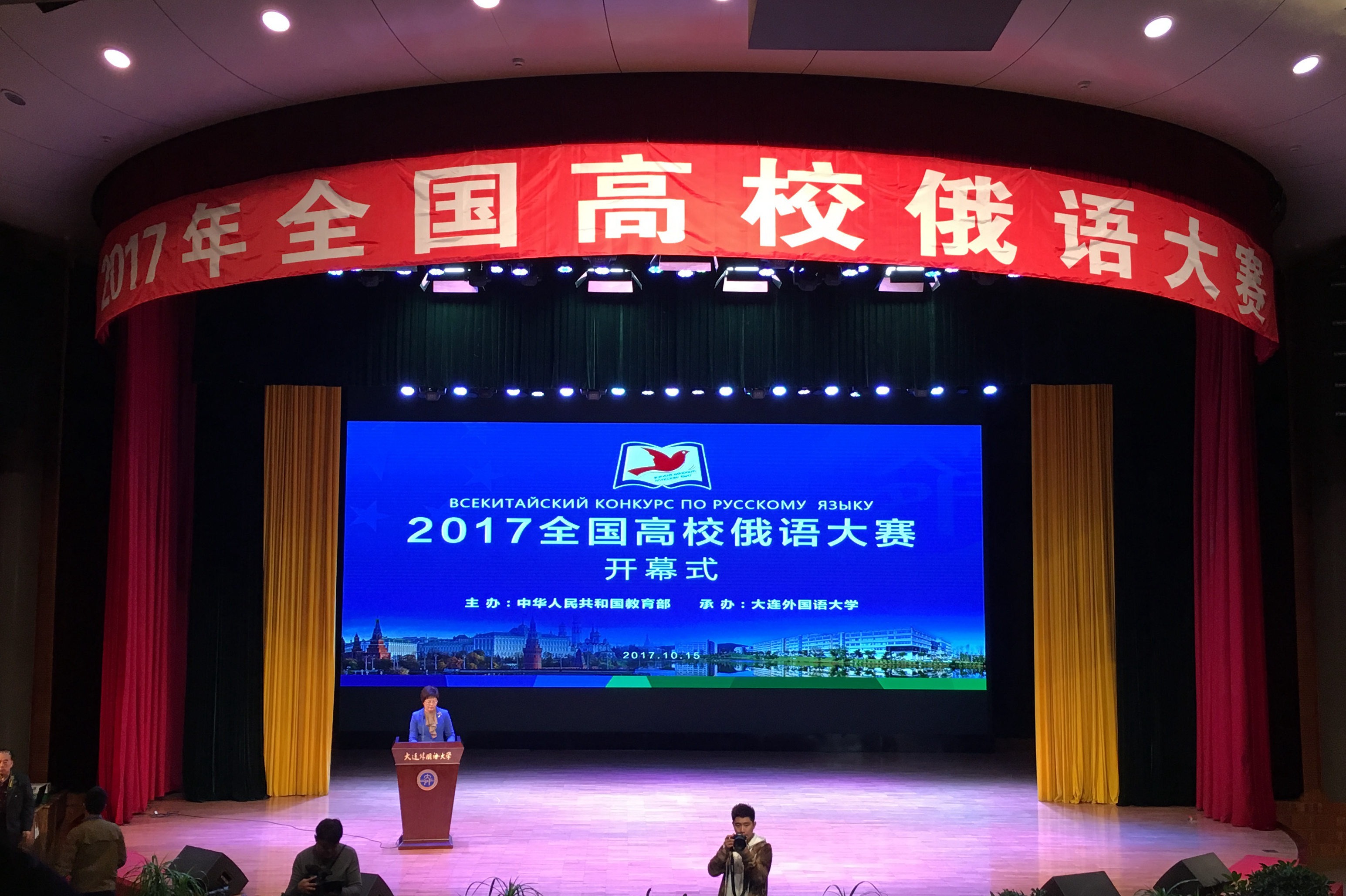全国高校俄语大赛是中俄“国家年”、“语言年”活动教育领域五大机制化项目之一,迄今已成功举办了十届,共选拔出450名优秀俄语人才通过国家留学基金委计划赴俄深造和学习。2017全国高校俄语大赛是在“一带一路”倡议的背景下举行的,并得到了教育部、辽宁省教育厅、俄罗斯联邦驻沈阳总领馆等中外各方的大力支持和高度关注;来自教育部外指委俄语分委会以及国内高校俄语专业的知名专家学者担任大赛评委和监委;此外,还有100多名带队教师及嘉宾莅临赛场,参赛选手及院校数量创历史新高,是大赛开办以来规模最大、水平最高的一届。