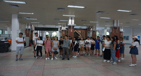 讲座结束后,在陈铮同学的带领下,全体新生参观图书馆,并亲身体验了刷卡选座、借还书、查询书目、使用自助文印机等图书馆功能。