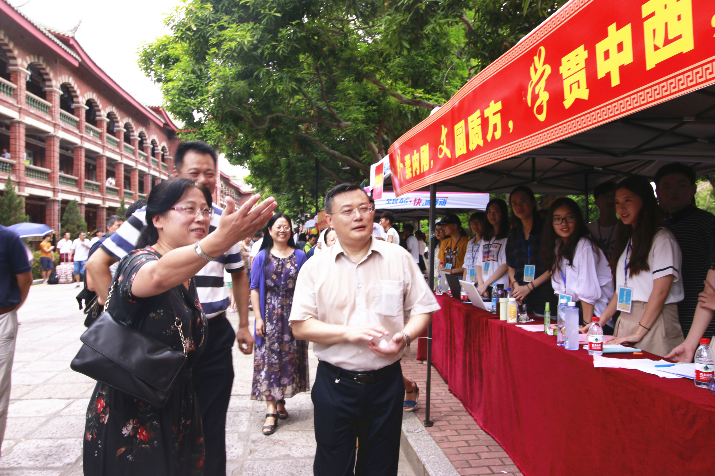 9月9日至10日,在凤凰花的灿烂映衬下,外文学院顺利完成了2017级新生的相关迎接工作。迎新过程中,厦门大学校长张荣、校党委副书记林东伟等校领导一行莅临外文学院迎新点指导慰问;学院党委书记陈志伟,党委副书记郑新风、杨云良,副院长辛志英,团委书记、研究生辅导员乐无恙,团委副书记、2016级本科生辅导员肖盈,本科生教学秘书陈雯娜,2014级本科生辅导员杨盛澜,2017级本科生辅导员蔡宇,本科生教学秘书王晓华,研究生教学秘书邹柳新等老师分赴现场指挥迎新工作。