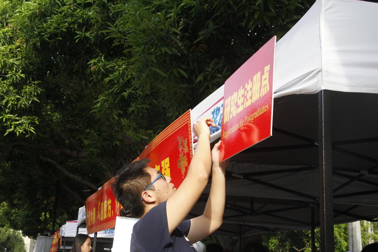 为确保迎新工作顺利开展,本科生团总支学生会,宣传中心,研究生团总支、学生会的学生干部们早在暑假期间就制定了详尽的迎新工作方案,事无巨细地安排工作。两天时间里,迎新筹备组的志愿者们每天一大早就布置好场地,守在迎新点,翘首以盼新生们的到来。