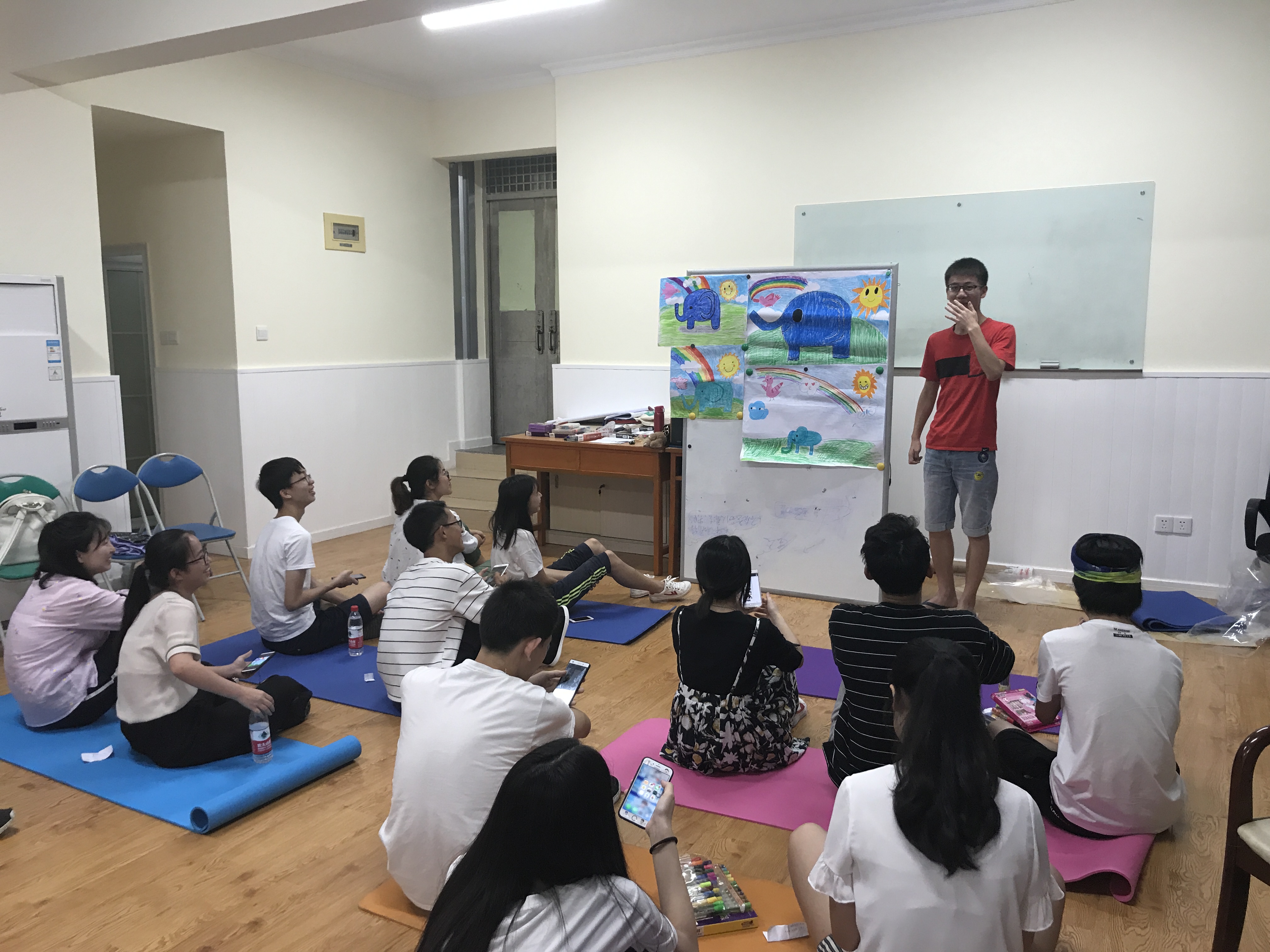 伴随着同学们的期待,团队迎来了第三天的训练。热身活动——解手环的成功让气氛达到了一个小高潮,昨天没解开手环的些许失落荡然无存,接下来“我说你画”环节更是趣味无穷。团队被分成了4个小组,每个小组只有其中一位同学能够看到原画。看画的同学“动口不动手”,只能用语言形容原画,在沟通中与小组成员共同完成创作。由于各个看画同学的不同表述以及小组同学绘画水平的不同,各组的作品也是各有特色。在看到原画后,同学们发出了久久不散的笑声,大家互相点评及分享自己的创作历程。通过三天训练,同学们从原来觉得是一场“推不掉的活动”到后来的变得“十分期待”,纷纷表示很开心还不够,一段时间以来的压力也得到了很好的缓解,期待今后学院能有多这样的活动。