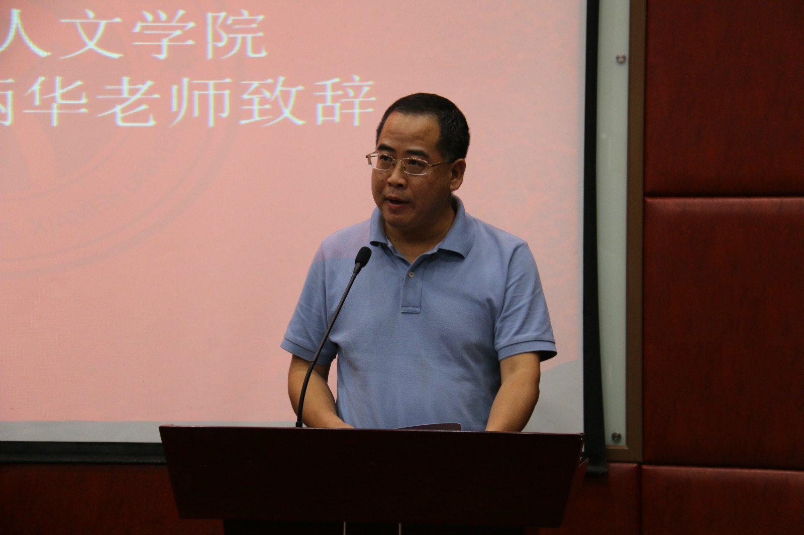 大会在庄严的国歌声中开幕。首先,人文学院党委书记王炳华代表学院党委上台致辞。王炳华书记代表学院党委向大会召开表示热烈祝贺,回顾了人文学院第十四届学生委员会在过去一年的工作,肯定了学生机构在班团组织建设、校园文化、文体活动、社会实践等方面取得的丰硕成果,并对即将产生的新一届学生委员会提出了殷切希望。希望新一届学生委员会要深入学习贯彻《共青团中央 教育部关于加强和改进新形势下高校共青团思想政治工作的意见》,继续加强组织建设,增强服务意识,打造人文品牌。