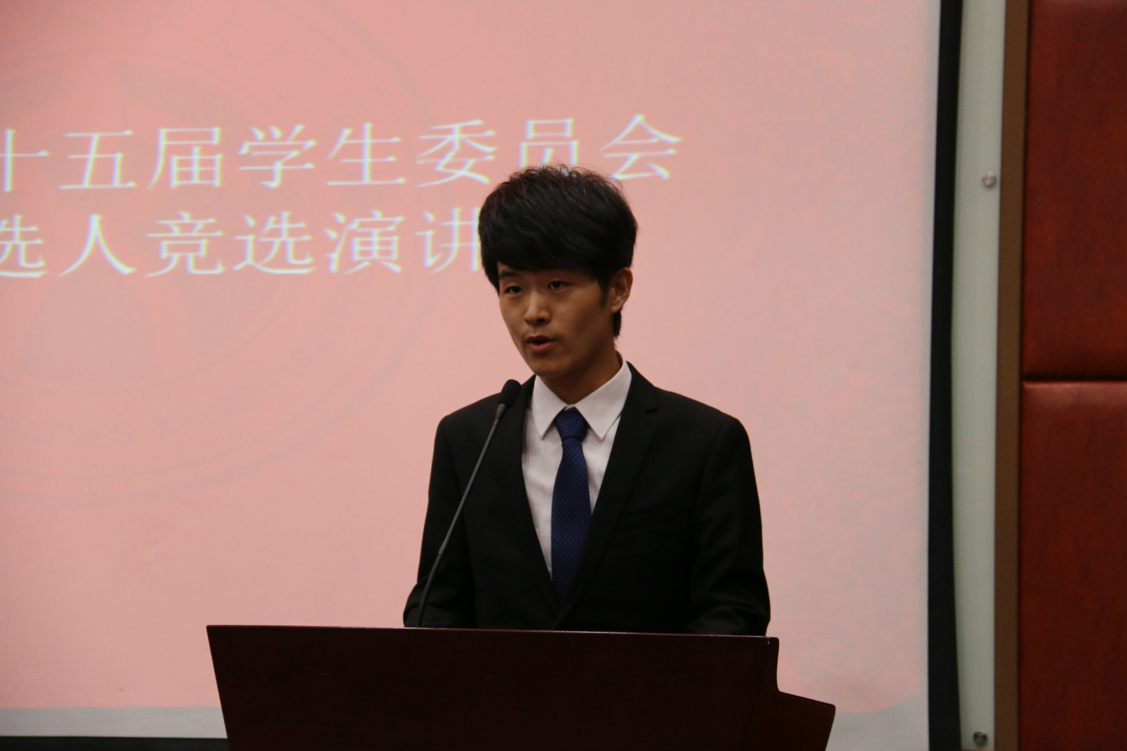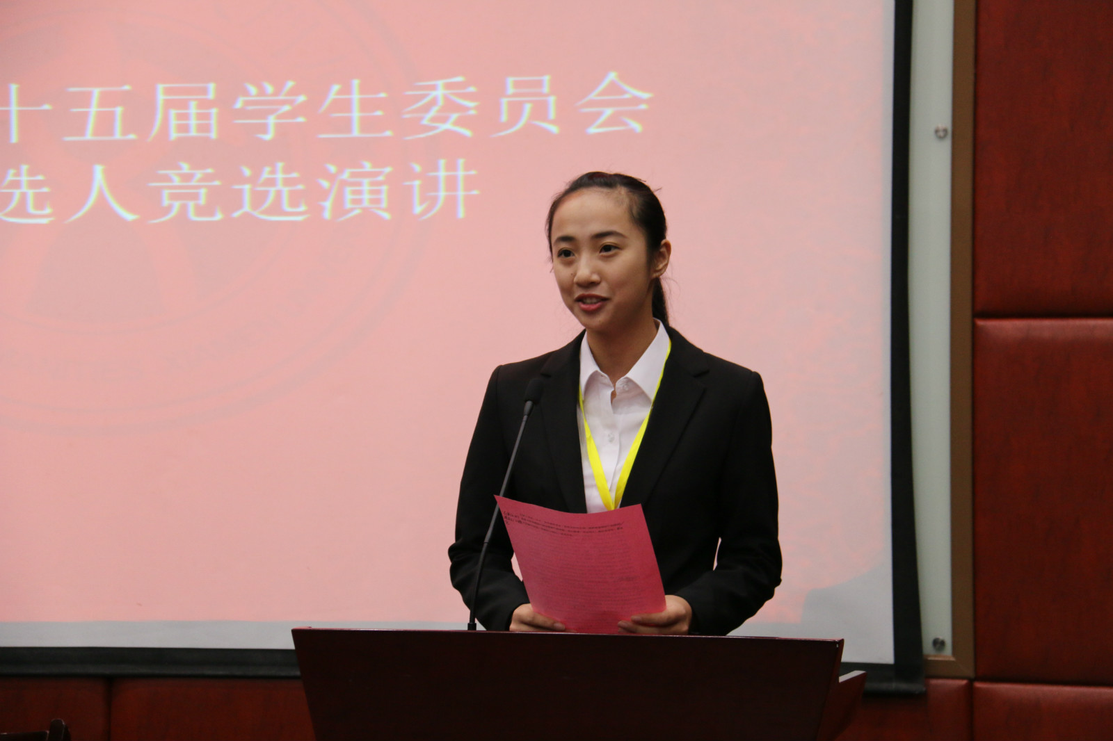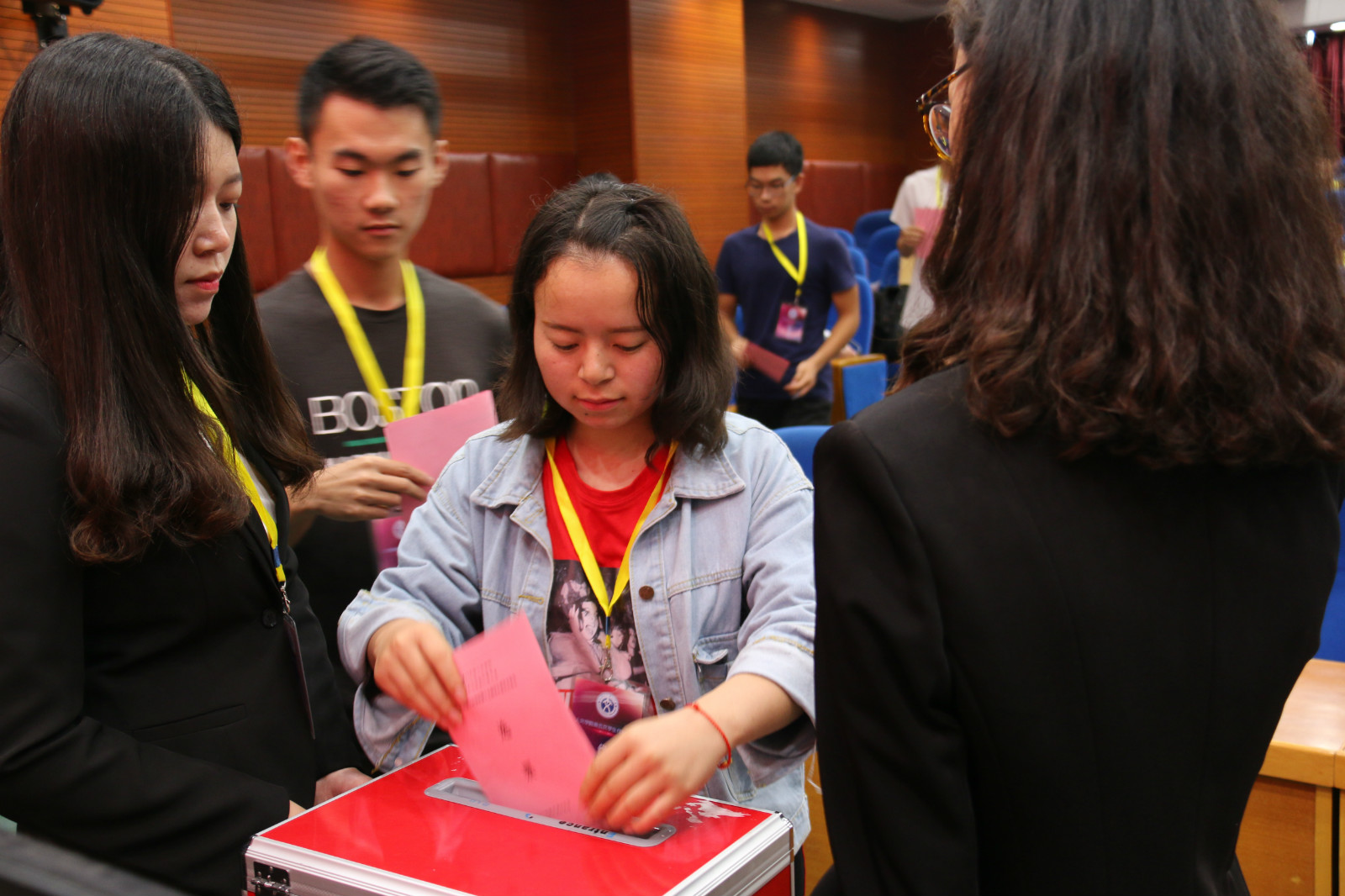 紧接着,大会进行了第十五届学生委员会候选人竞选。20名候选人依照抽签顺序上台进行演讲。演讲结束后,大会审议通过了人文学院第五次学生代表大会选举办法和人文学院第五次学生代表大会监选人员建议名单。在场学生代表投票选举产生了17名新一届学生委员。