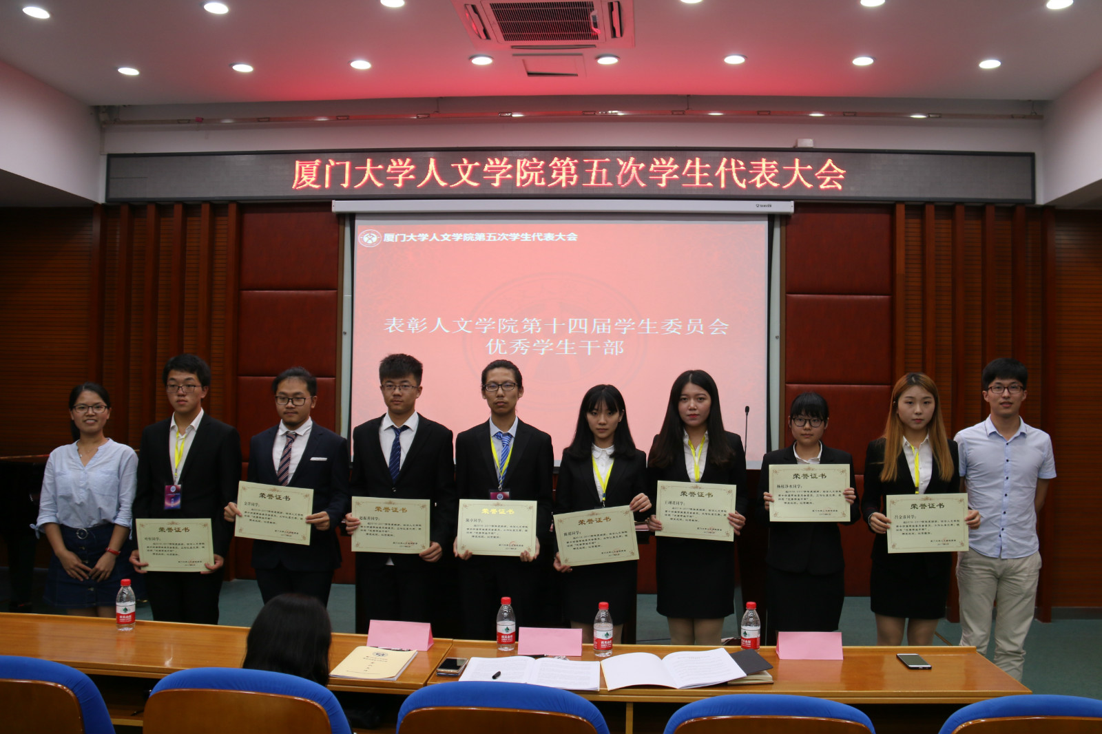 在选举计票的同时,大会表彰了人文学院第十四届学生委员会优秀学生干部。