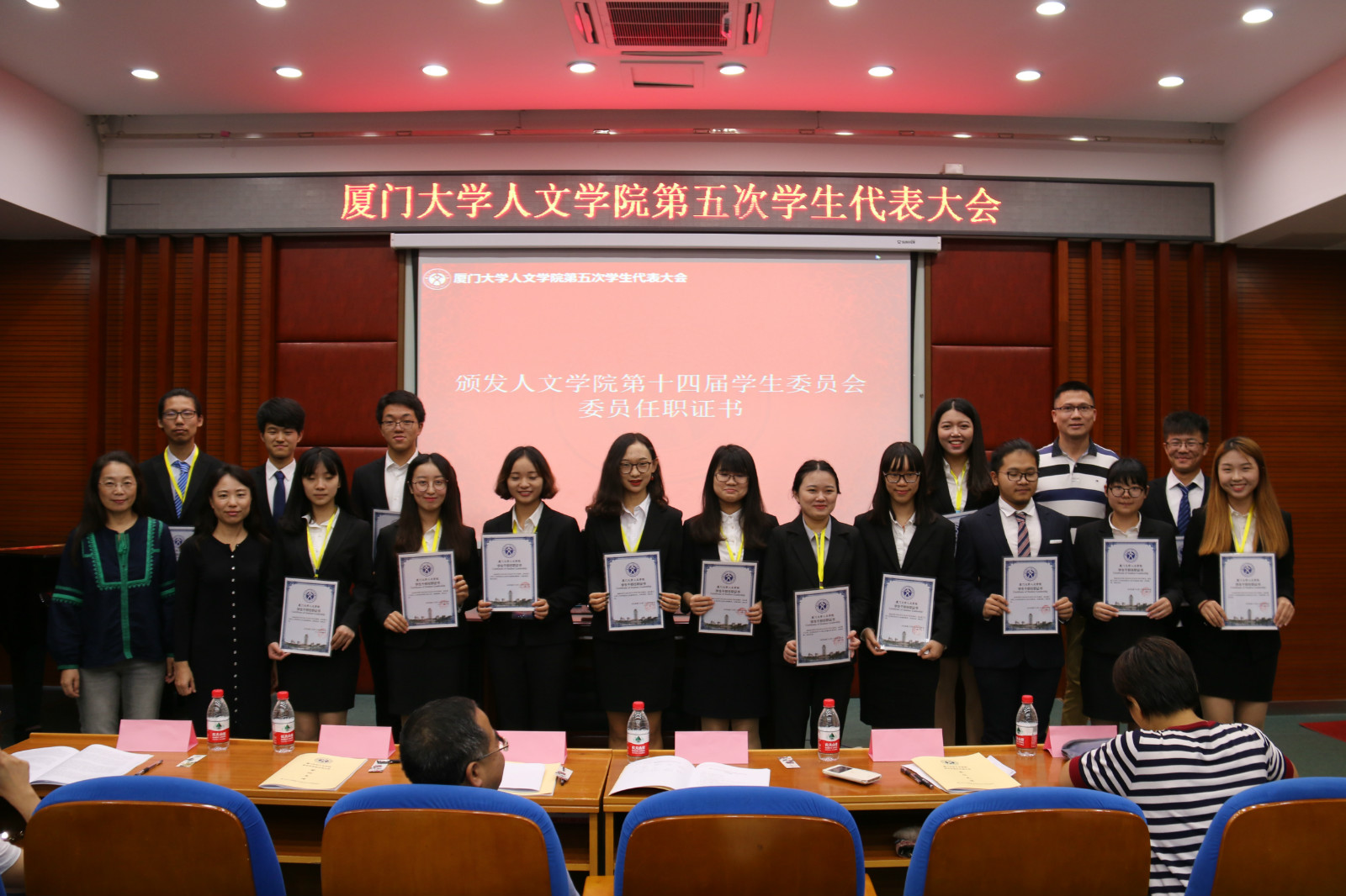 随后,大会颁布了人文学院第十四届学生委员会委员任职证书。