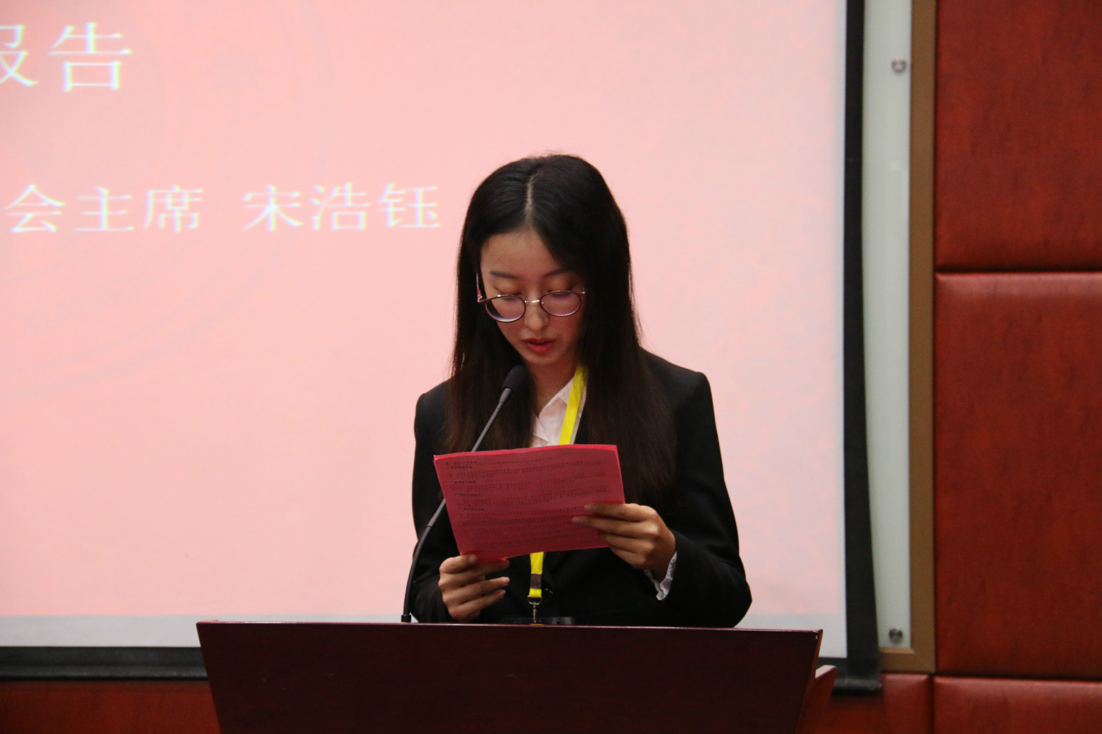 开幕式结束后,人文学院第十四届学生委员会主席宋浩钰代表学生委员会作第十四届学生委员会工作报告。回首过往,人文学院第十四届学生委员会坚持贯彻“不忘初心,不止于行,精诚合作,筑梦人文”的工作理念,致力于优化服务管理的科学性与效率,注重营造浓郁的学术氛围,大力传递人文温暖与活力,加强了思想建设、学风建设与制度建设;展望未来,人文学院学生委员会将深化制度改革,强调学术氛围,强化品牌效应,落实服务职能,做同学们真正认可、信赖的学生机构。