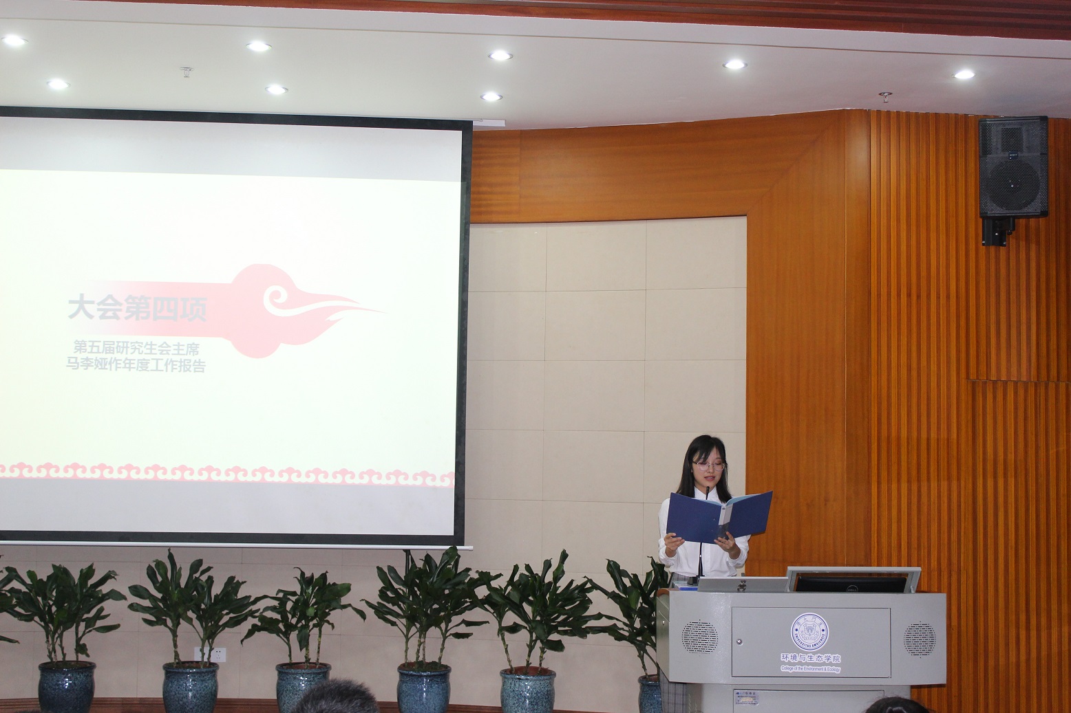 大会在庄重的国歌声中拉开序幕,毛勇代表学院团委在会议上致辞,他对第五届环境与生态学院团总支研究生会这一年来的工作给予了肯定和赞赏,并寄语即将产生的下届研究生会,希望其能继承上一届兢兢业业、刻苦耐劳的工作精神,并能更进一步,更好的服务于同学。随后校研会主席黄曦上台致辞,对此次会议的召开表达了衷心的祝贺。