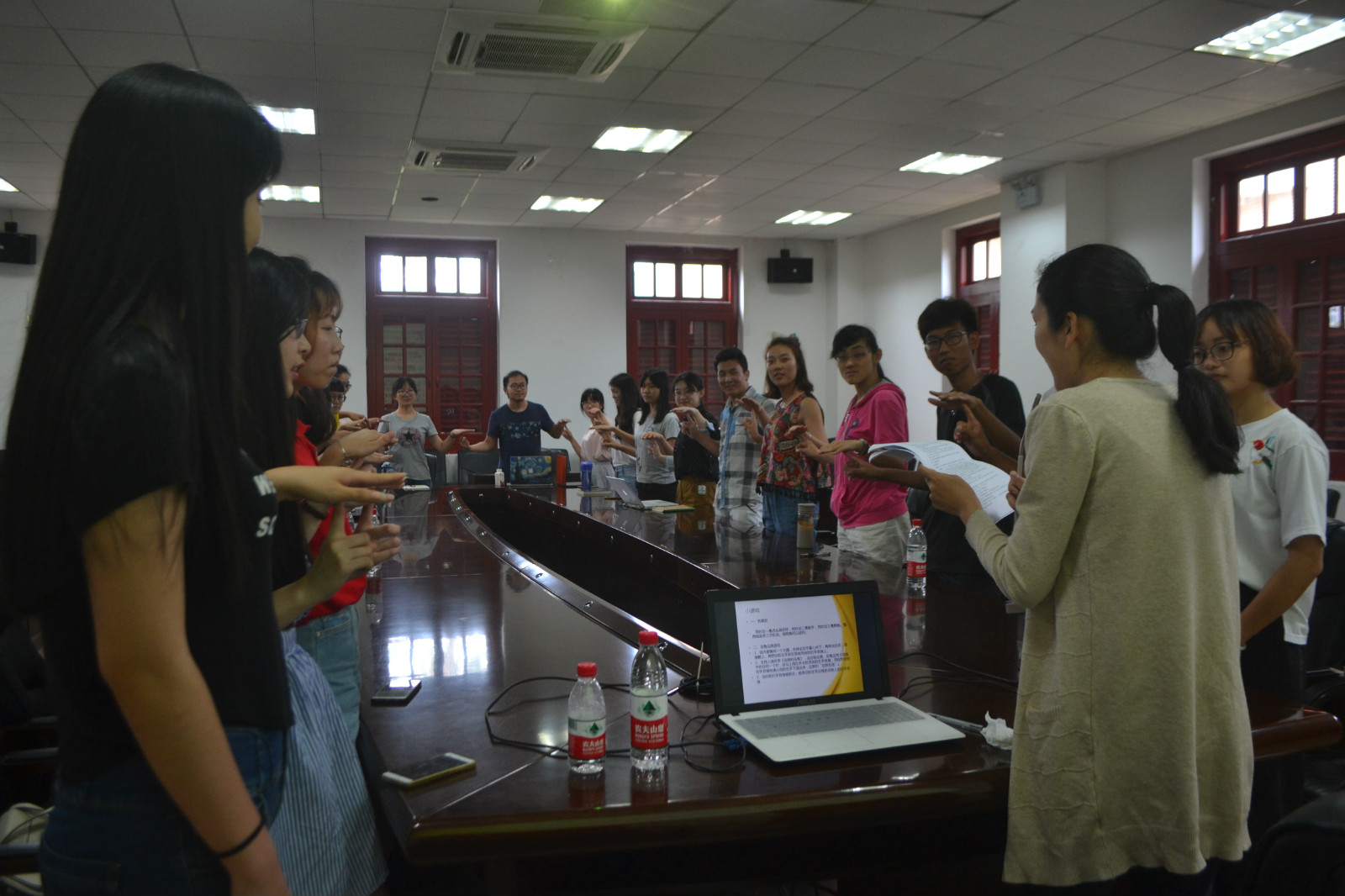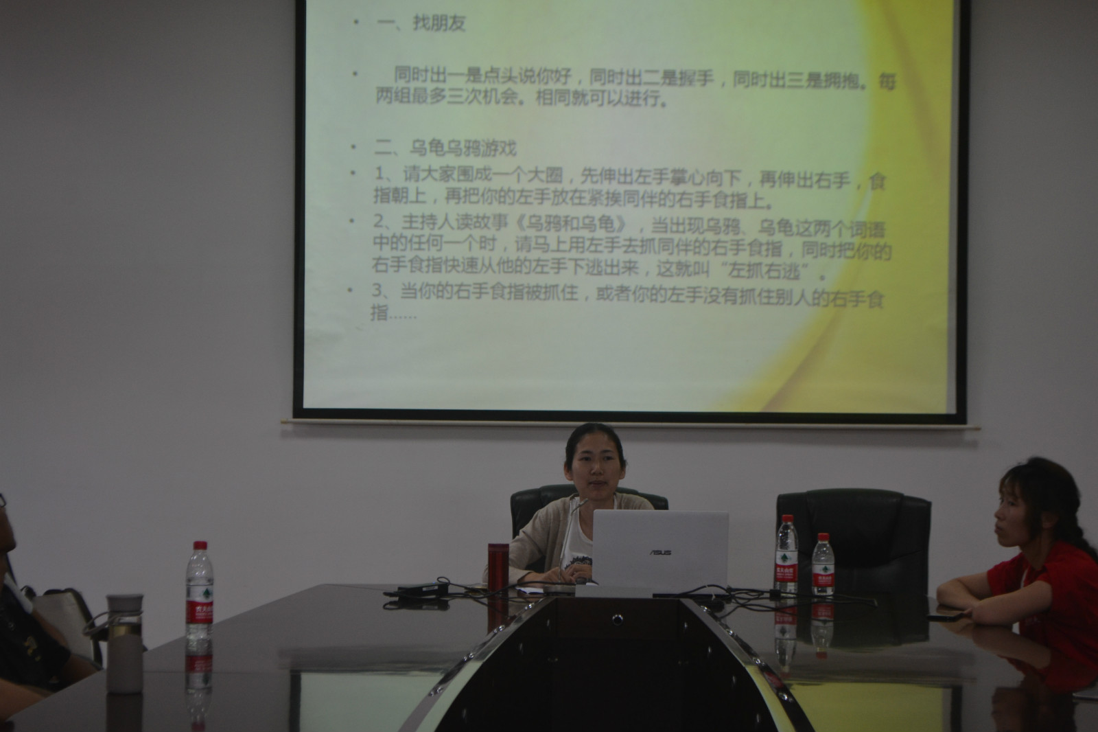 在主持人致开场词后,朱晓芳老师开始介绍此次心理沙龙的主题,并让在场的同学一起做了两个小游戏。乌龟乌鸦游戏中的“左抓右逃”考验了各位同学的反应力与判断能力,大大活跃了现场气氛。而“找朋友”游戏中的集体互动更是大大加强了同学们之间的交流与合作。