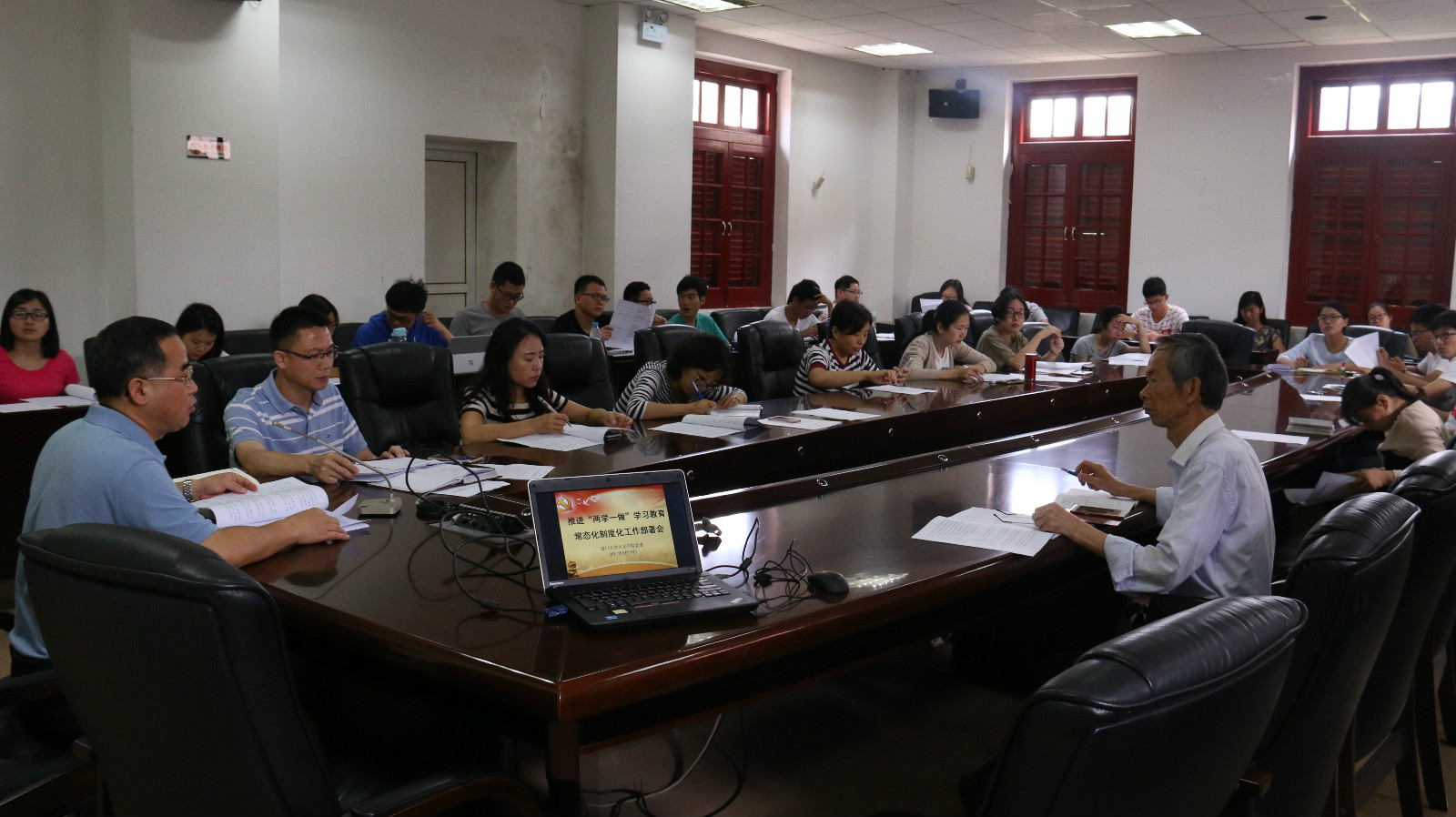 会上,人文学院党委书记王炳华介绍了人文学院关于推进“两学一做”学习教育常态化制度化的实施方案,从重大意义、总体要求、基本要求、主要措施、组织领导五个方面做了全面部署。王书记强调,开展“两学一做”学习教育,是坚持思想建党、组织建党、制度治党紧密结合的有利抓手,是不断加强党的思想政治建设的有效途径,是全面从严治党的战略性、基础性工程。推进“两学一做”学习教育常态化制度化,对于进一步用习近平总书记系列重要讲话精神武装全党,加强和规范党内政治生活,保持党的先进性和纯洁性,增强党的生机活力,确保全党更加紧密地团结在以习近平同志为核心的党中央周围,激励全党为实现崇高理想和宏伟目标而不懈奋斗,不断开创中国特色社会主义事业新局面,实现学校“两个百年”的战略目标,具有重大而深远的意义。