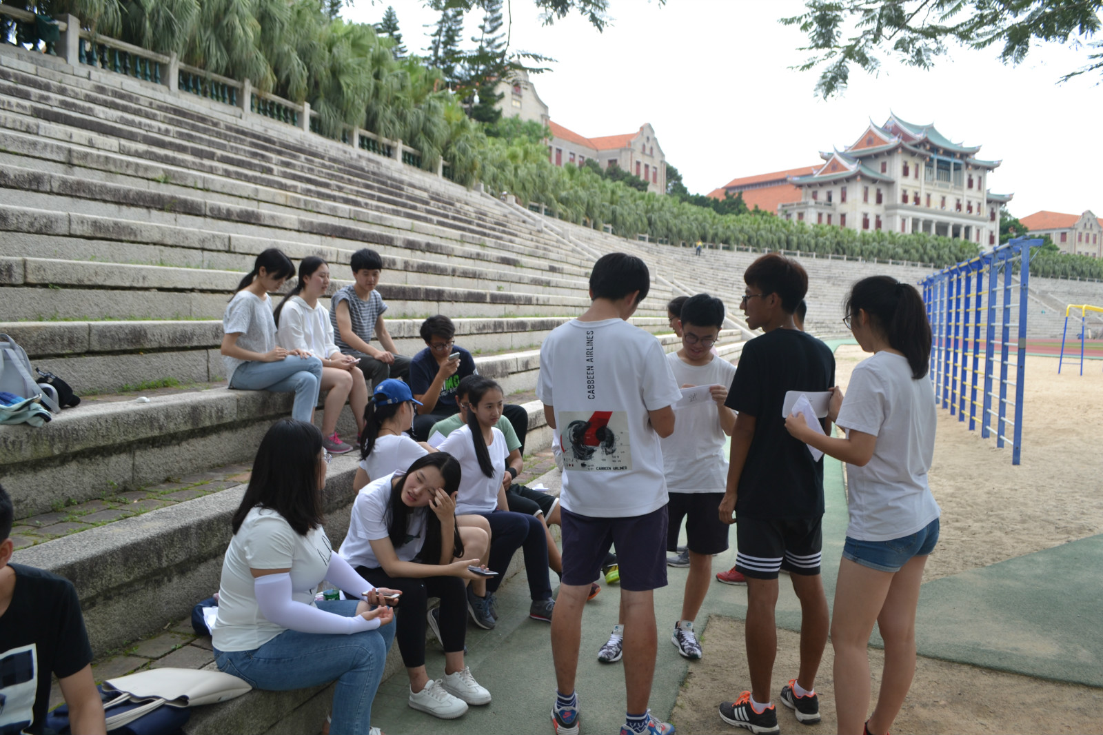 炎炎烈日下,五个环节的比拼让参赛者们大汗淋漓,但队员间默契的配合让劳累烟消云散。比赛中偶尔出现的失误也会变成欢笑的引线,阵阵笑声在盛夏的上弦场上洋溢着。