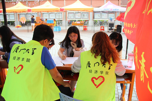 4月21日,厦门大学经济学院青年志愿者协会“诠释爱”志愿服务队在三家村广场展开了为期三天的造血干细胞资料采集活动,此次活动由“诠释爱”志愿服务队与厦门市中心血站联合举办,是“诠释爱”志愿服务队的品牌活动之一。