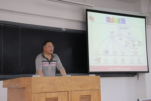 厦门市中心血站分子生物学研究室主任裴斌老师刚抵达会场,便亲切地同前来参加讲座的同学们打招呼,和蔼的笑容,让略显紧张的气氛瞬间活跃起来。首先,裴老师简单介绍了中华骨髓库以及其与国外一些大型骨髓库之间的异同。寥寥数语,便将我国造血干细胞捐献现状展现给大家,如今配型成功比率不高导致很多人的生命不能得到延续的情况也带给了同学们一丝触动。接下来,裴老师介绍了往年厦门市造血干细胞的捐献事例,其中不乏厦门大学的学子。一幅幅图片,一张张面孔,裴老师清清楚楚地记得照片上每一个人的名字,甚至连他们捐献的时间都记得一清二楚。裴老师娓娓道来,每张图片都有一段感人至深的故事,人间大爱,从小小的屏幕中传递出来,认真倾听中,在座的同学收获了一份感动。随后,裴老师详细讲解了造血干细胞捐献的完整流程,同学们收获良多。在最后的抽奖环节中,欢声笑语之间,讲座缓缓落下帷幕。