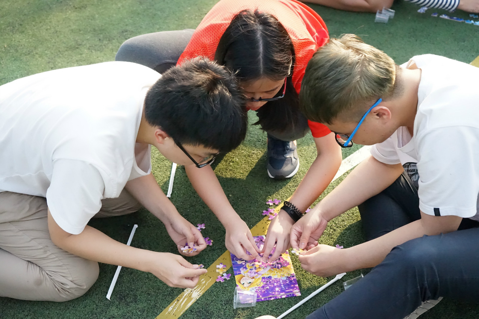 计时铃敲醒了尘封的拼图,参赛小组各自围坐一团,紧张的气氛也并未使选手们手忙脚乱,散落的拼图一块一块拼凑着旗开得胜的决心。