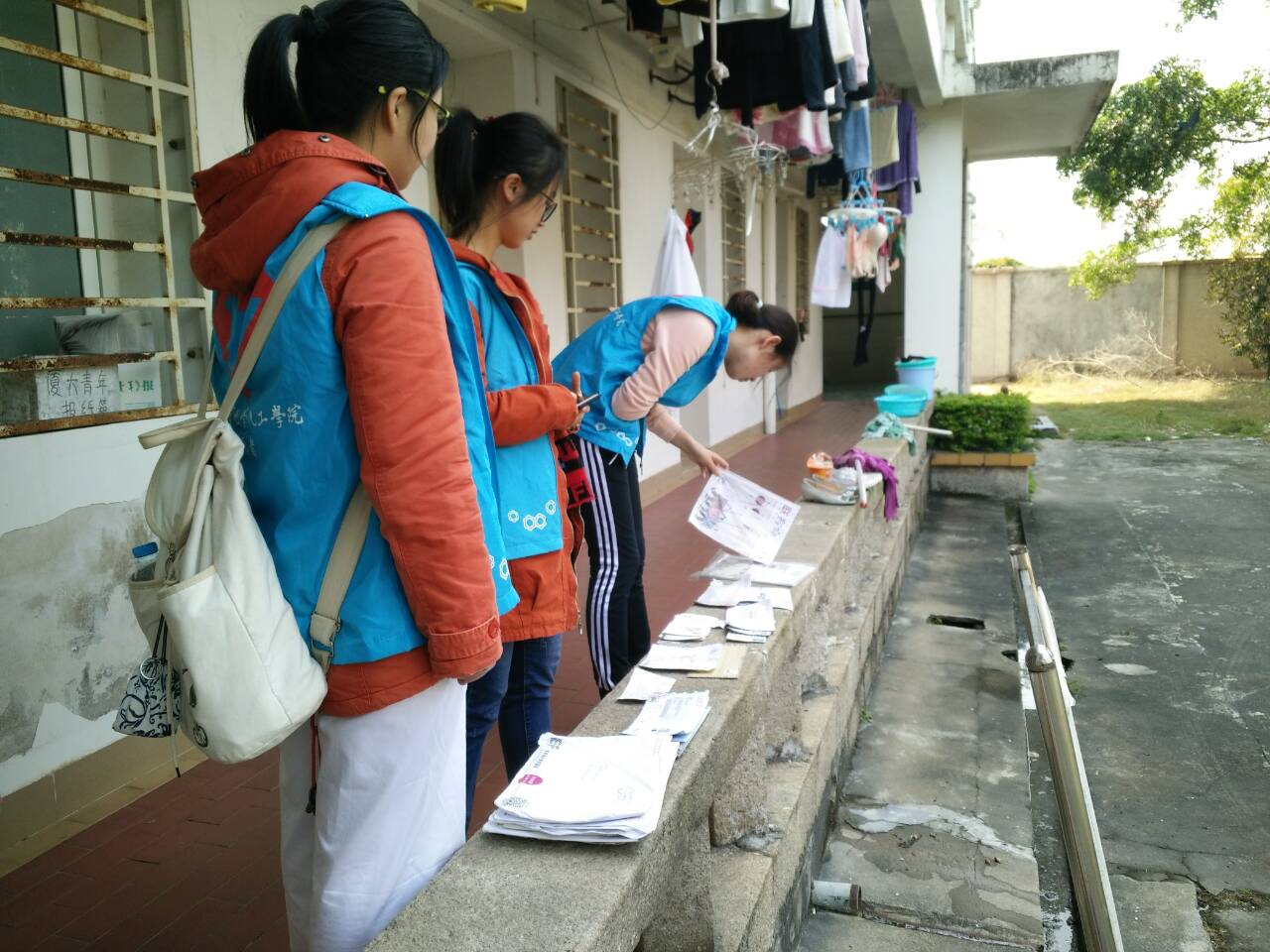 中午12点半,志愿者们准时在芙蓉一集合,在青协成员的带领下紧凑而有序进行签到、着装、分配任务,浩浩荡荡地向南光七、凌云一、芙蓉一、石井三四五等6栋宿舍楼前进。