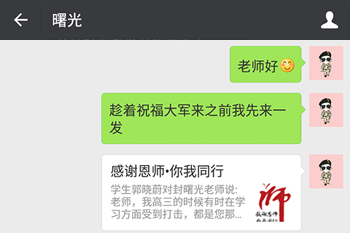 最后,在欢乐的春节到来之际,同学们先后都将贺卡发给了恩师。如此,便成就了一份特殊的春节礼物以及一颗独一无二的感恩的心。