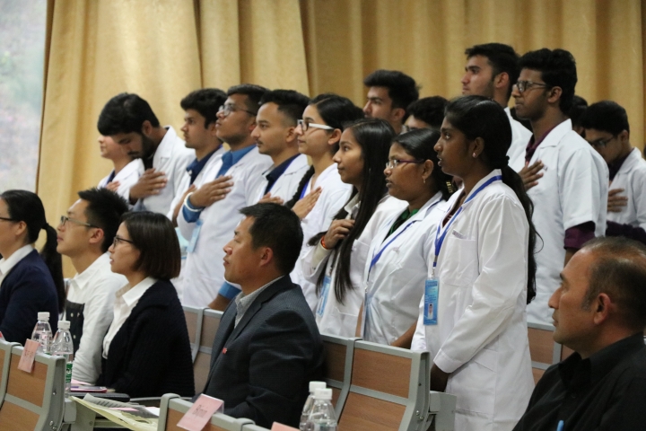 激昂的校歌声中,医学院2016级MBBS留学生开学典礼落下帷幕。