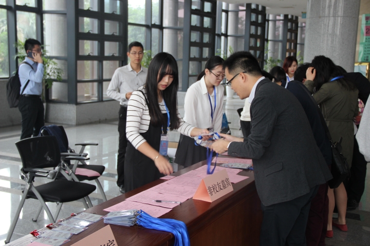 7点30分,厦大西门、南门便能看到身穿绿马甲的引导组志愿者早已就位,时刻准备引导到场嘉宾至会场;科艺中心大厅中,报道组的志愿者们西装革履,有礼大方,用最严谨的态度迎接每一位来宾。