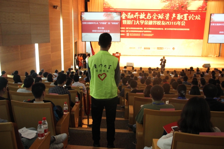 11月12日早8点45分,中国金融开放与全球资产配置论坛暨厦门大学金融界校友2016年会在厦门大学科学艺术中心隆重召开。为了确保论坛的顺利举行,厦门大学经济学院青年志愿者协会“与会同行”队带领志愿者们不遗余力地承担起重要的后勤工作。