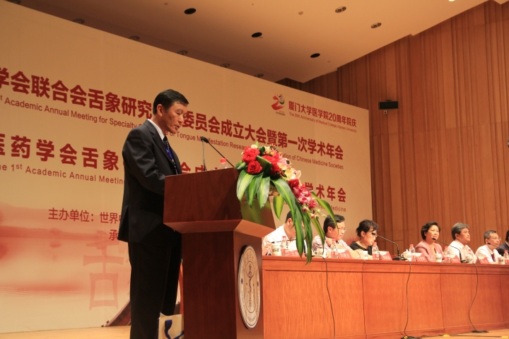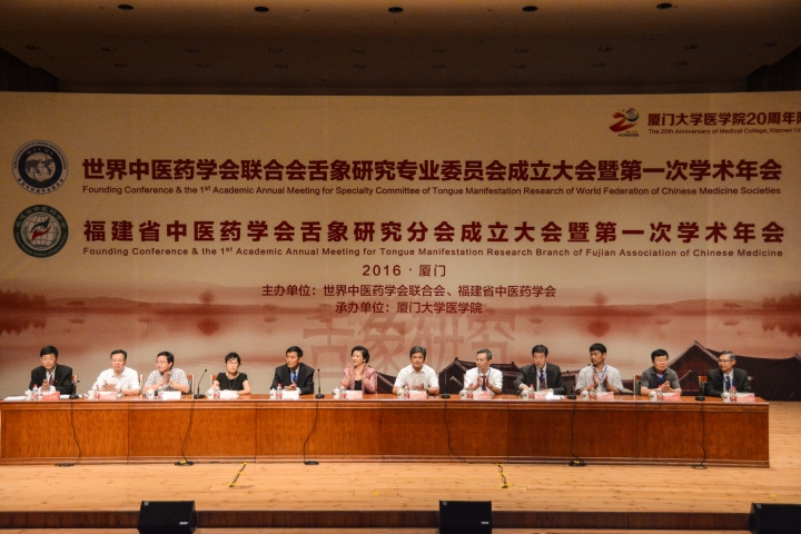 世界中医药学会联合会(以下简称“世界中联”)舌象研究专业委员会暨福建省中医药学会舌象研究分会成立大会10月29日在厦门大学召开。本次大会由世界中联、福建省中医药学会主办,厦门大学医学院承办。成立大会由厦门大学医学院中医系系主任钱林超教授主持。出席会议的有厦门大学詹心丽副校长、福建省卫计委阮诗玮副主任、世界中联桑滨生副秘书长、世界中联学术部关涛副主任、厦门市人大陈进春副秘书长、厦门市卫计委王挹青副主任、福建省卫计委中医处钱新春处长、厦门市卫计委中医科教处陈洪涛处长、福建省中医药学会刘建忠会长、福建省中医药学会吴宽裕秘书长、世界中联舌象研究专委会会长、福建省中医药学会舌象研究分会主任委员王彦晖教授、中华中医药杂志闫志安社长、厦门市针灸学会周然宓会长、台湾中国医药大学张恒鸿教授、厦门大学医学院齐忠权教授。出席会议的还有来自香港、澳门、台湾、马来西亚等世界各地海内外百余名从事舌象研究、中医临床、保健养生、仪器研发等相关学科的专家。