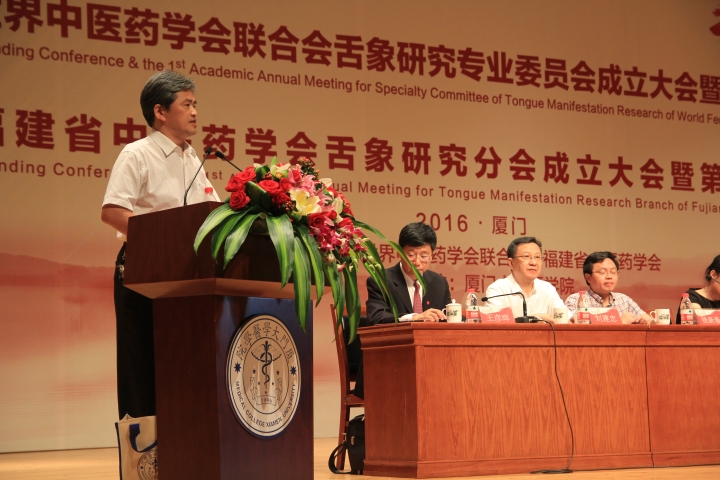 阮诗玮代表福建省卫计委对此次大会的顺利召开表示热烈祝贺,并且提出舌象研究专委会/分会的成立有利于开展中医舌象的研究工作,有助于促进海内外中医工作者们的学术交流,对中医药走向世界具有良好的推动作用。舌象研究专委会/分会的成立对于中医舌象的学术经验和研究成果的推广与普及有着积极的促进作用,使舌象诊断走向更加精确化、明朗化的道路、使医务工作者对于舌象的把握更加深刻和精准,从而更加有力的的推动中医的发展。