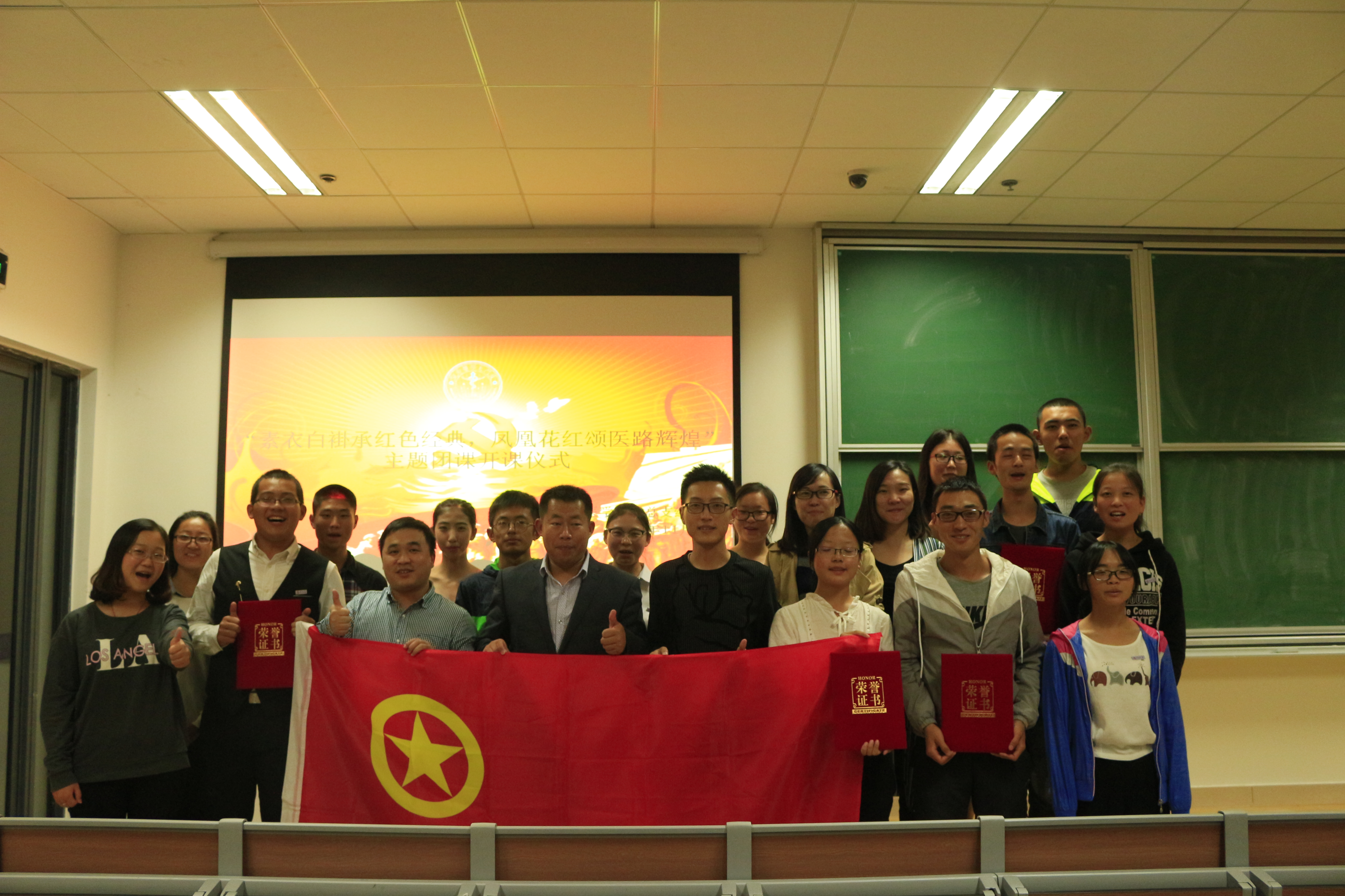 11月2日晚,医学院“素衣白褂承红色经典,凤凰花红颂医路辉煌”主题团课开课仪式在爱礼楼104教室成功举办。医学院党委副书记马龙,团委副书记陈国渊,辅导员谢婷玉、邱超超、鲍小佳及各团支部代表参与了此次活动。