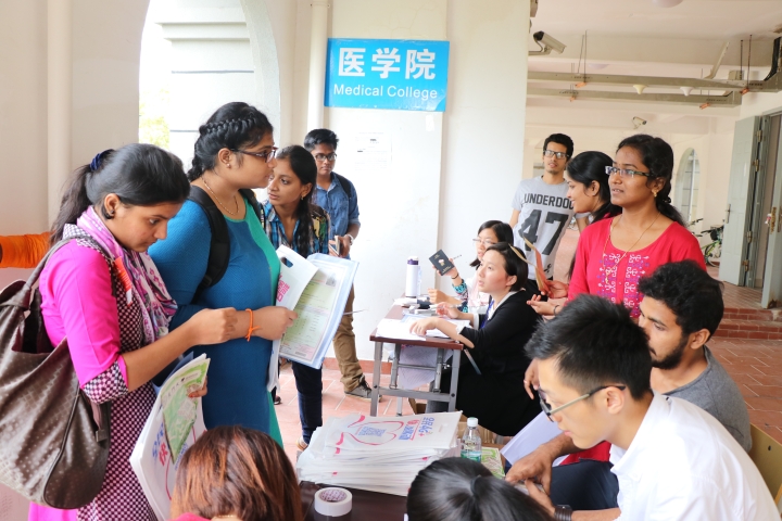 10月13日中午,医学院迎来了2016级MBBS专业(临床医学英语授课)新生。今年的迎新点设置在翔安校区二期宿舍国光十号楼,为迎接远道而来的留学生,医学院布置了醒目的双语横幅、校园地图和各类相关须知,现场氛围热烈而温馨。