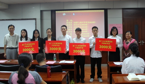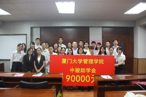 9月28日下午4时30分,管理学院中骏助学金颁发仪式在嘉庚二201教室如期举行。厦门市慈善总会副会长巫秀美女士、副秘书长李元朝先生,中骏置业控股有限公司常务副总裁李维先生、总裁办秘书处总监刘媚女士,管理学院党委陈雪玲书记、李峰副书记、洪秋霞副书记以及获助学生代表等出席了颁发仪式。仪式由团委副书记吴光锡主持。