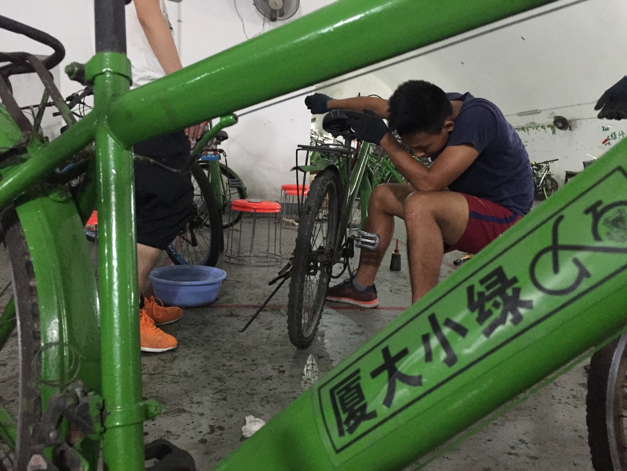 2016年9月19日,面对着如此巨大的灾难与挑战,厦门大学“小绿”自行车维修志愿者团队自发成立紧急抢险小组,立即展开了全校性“小绿”灾后抢救。