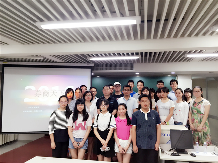 2016年5月29日晚七点,由经济学院就业促进中心举办的第四届“券商天下”活动在经院N401如期举行。活动嘉宾邀请到国信证券陈惠川先生、广发证券陈根勇先生。本次活动吸引了众多同学前来参加,现场气氛活跃,同学们与嘉宾、主持人互动热烈,活动取得圆满成功。
