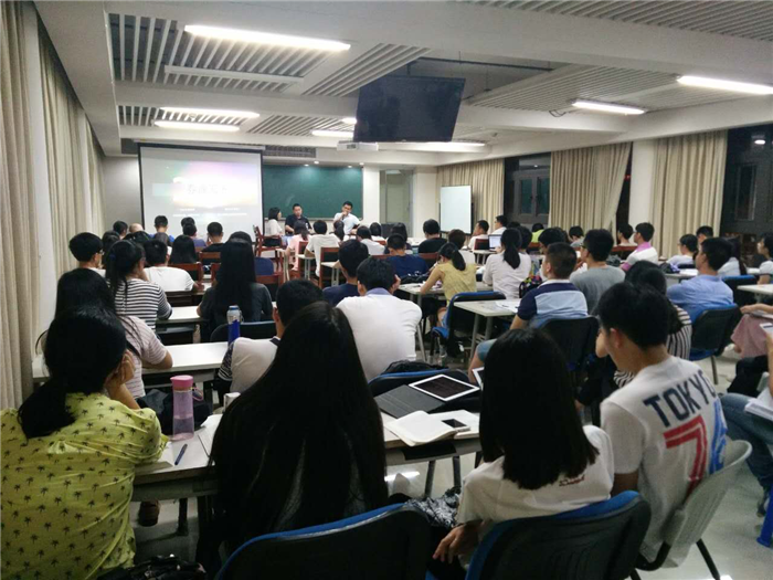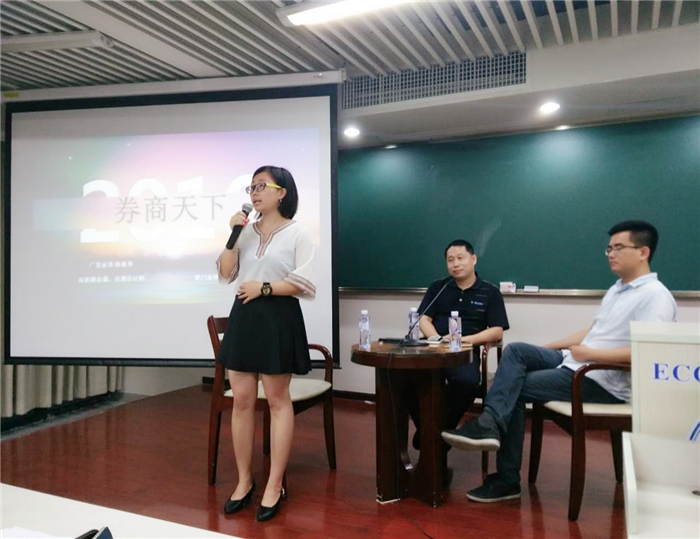 两位嘉宾分别就自己的职场生涯分享他们的经历。陈根勇先生首先分享了自己从本科生阶段到接触炒股的经历,接着介绍了券商行业和证券公司的结构和近几年发展,最后为同学们解答了进入券商行业所需的重要条件。陈惠川先生就自身经历为同学们介绍了证券各个部门的职能,并重点介绍了他所处的营业部所需的人才及招聘标准,接着他还引用一个事例启发同学们重要的是要明确自己未来想要发展的方向,才能收获成功。
