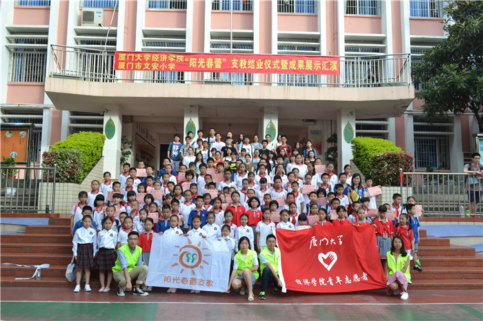 5月27日,厦门大学经济学院青年志愿者协会“阳光春蕾”支教队在文安小学举行了2015~2016年度第二学期“阳光春蕾”文安小学支教活动的结业仪式。