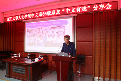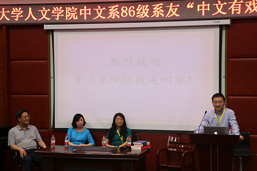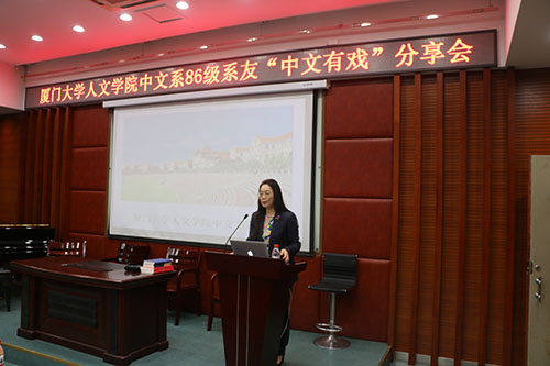 5月1日上午9时,中文系86级系友“中文有戏”分享会在南光一101报告厅举行。人文学院党委书记王炳华、副院长李晓红、86级中文系辅导员郑楚、院团委书记暨校友工作秘书马向华及45位86级中文系系友出席分享会,中文系及其他各系在校学生代表也到场参与交流互动。