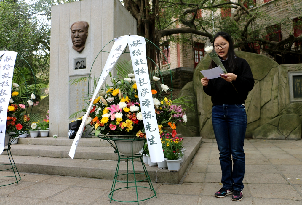 接下来,同学们默哀一分钟,时间似乎过得慢极了,只听到耳畔细细的风声。同学们以这种方式纪念着这位创办“南方清华”的校长。萨校长曾在这片土地上付出了多少心血,如今安眠在南方之强浓郁的书香里。他不仅将看到冬去春来,也将看到厦大走进世界。