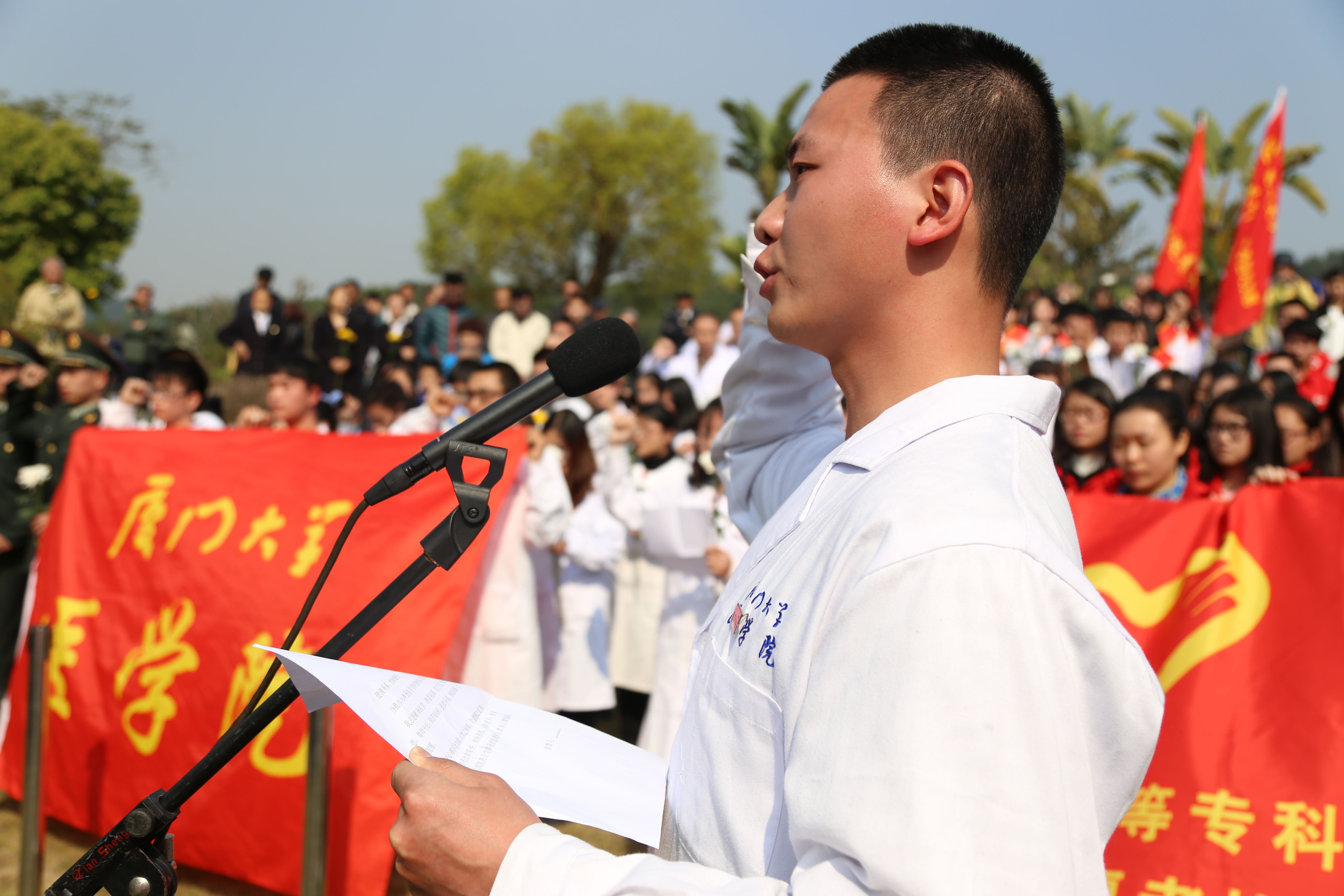 为积极响应党中央“两学一做”号召,以实际行动争做合格党员,3月27日上午,医学院“白衣天使”先锋党支部党员及第62期党校学员前往海沧文圃山恩泽园参加厦门市遗体和器官捐献者缅怀纪念活动。市遗体和器官捐献者家属、志愿者代表、市政协原副主席潘世建、市红十字会党组书记,常务副会长苏甦、市红十字会副会长兼秘书长俞娟、市纪委周文处长、市民政局于维民处长、厦门市海沧旅游集团总经理谢元荣、海沧文圃山陵园开发公司总经理苏焕英以及厦门大学医学院、厦门医学高等专科学校、厦门大学附属眼科中心和各区红十字会代表共350余人一同参加了此次活动。