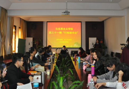 3月3日上午8:30,马院第三十一期“行知读书会”在成智二110会议室举行。本次读书会邀请了毛泽东思想和中国特色社会主义理论体系概论教研室庄三红老师为学生做学习指导。院团委书记蔡虎堂及全体研究生参加了此次读书会。