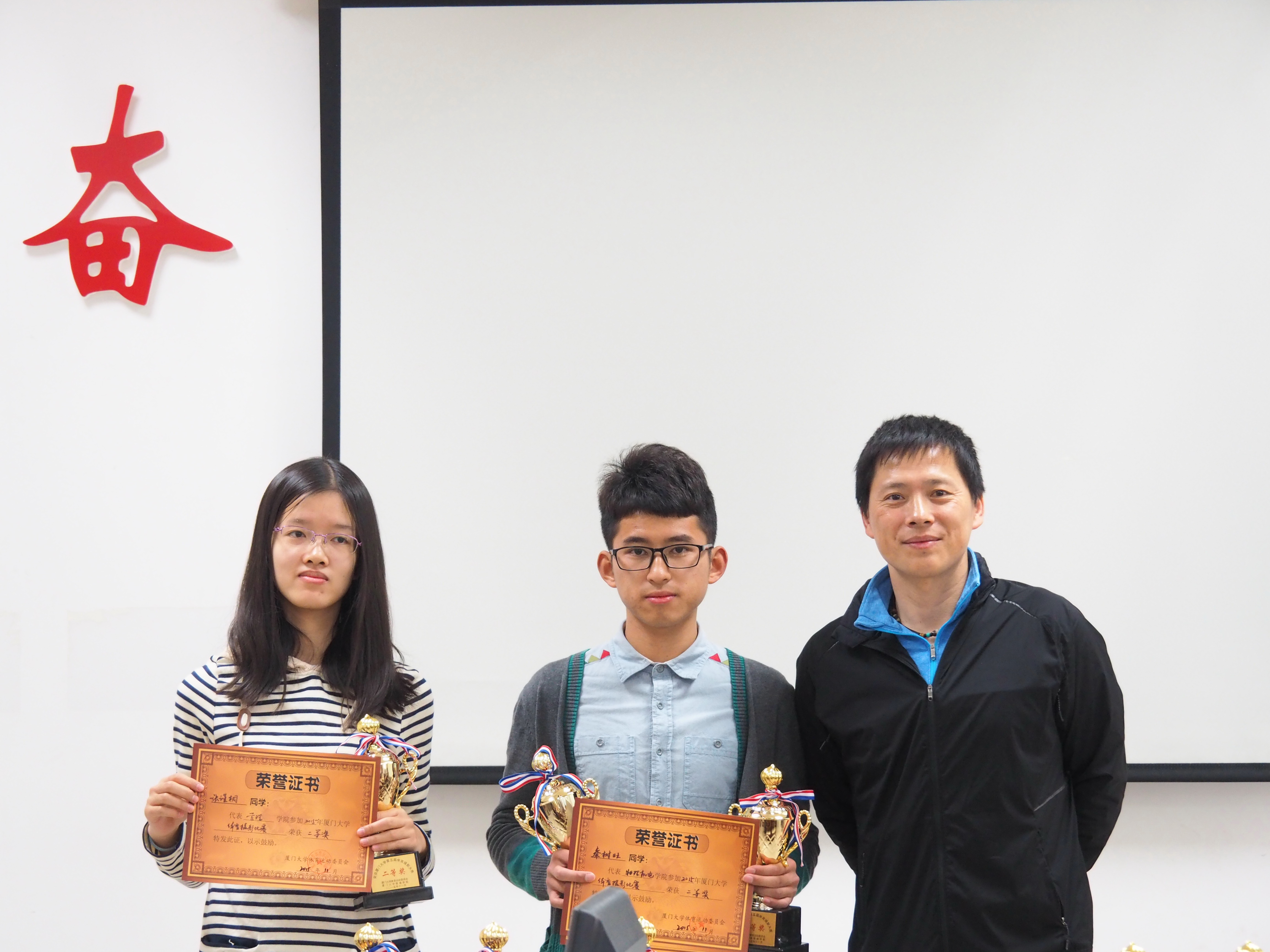 仪式上,付正超为获得厦门大学第五届体育摄影大赛优秀奖的代表颁发证书。揭上锋、陈华、李峰为获得三等奖、二等奖、一等奖的代表颁发证书和奖杯。