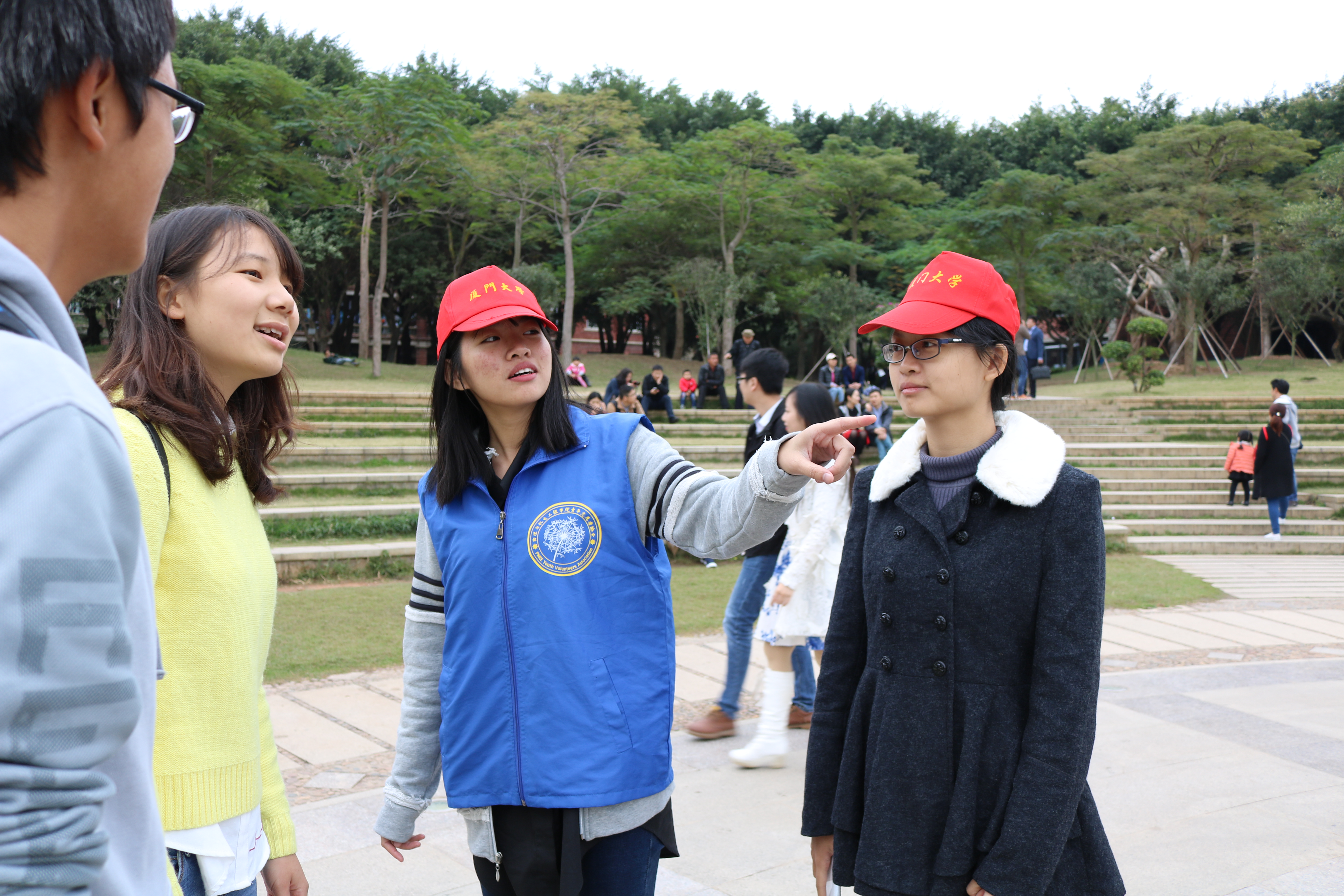 每逢周末,都是游客进入校园游览的高峰期,参与“游客引导”的志愿者主要集中在芙蓉湖周边。芙蓉湖作为学校重要的标志性景点以及学生活动区域,人口密集、活动频繁,积极引导游客进行文明游览对于提升学校形象以及改善校园环境质量有着很重要的作用。对于络绎不绝的游客,当他们在校园里找不到景点时,当他们疑惑嘉庚群楼的起源时,或者当他们对学校的诸多方面有各种疑问却不得解时,志愿者们就会热心的为他们指明方向、解答疑惑。同时,当发现部分游客有不文明行为,志愿者们也会及时劝导,避免校园环境被破坏,展现给大家一个美丽、整洁的芙蓉湖景。