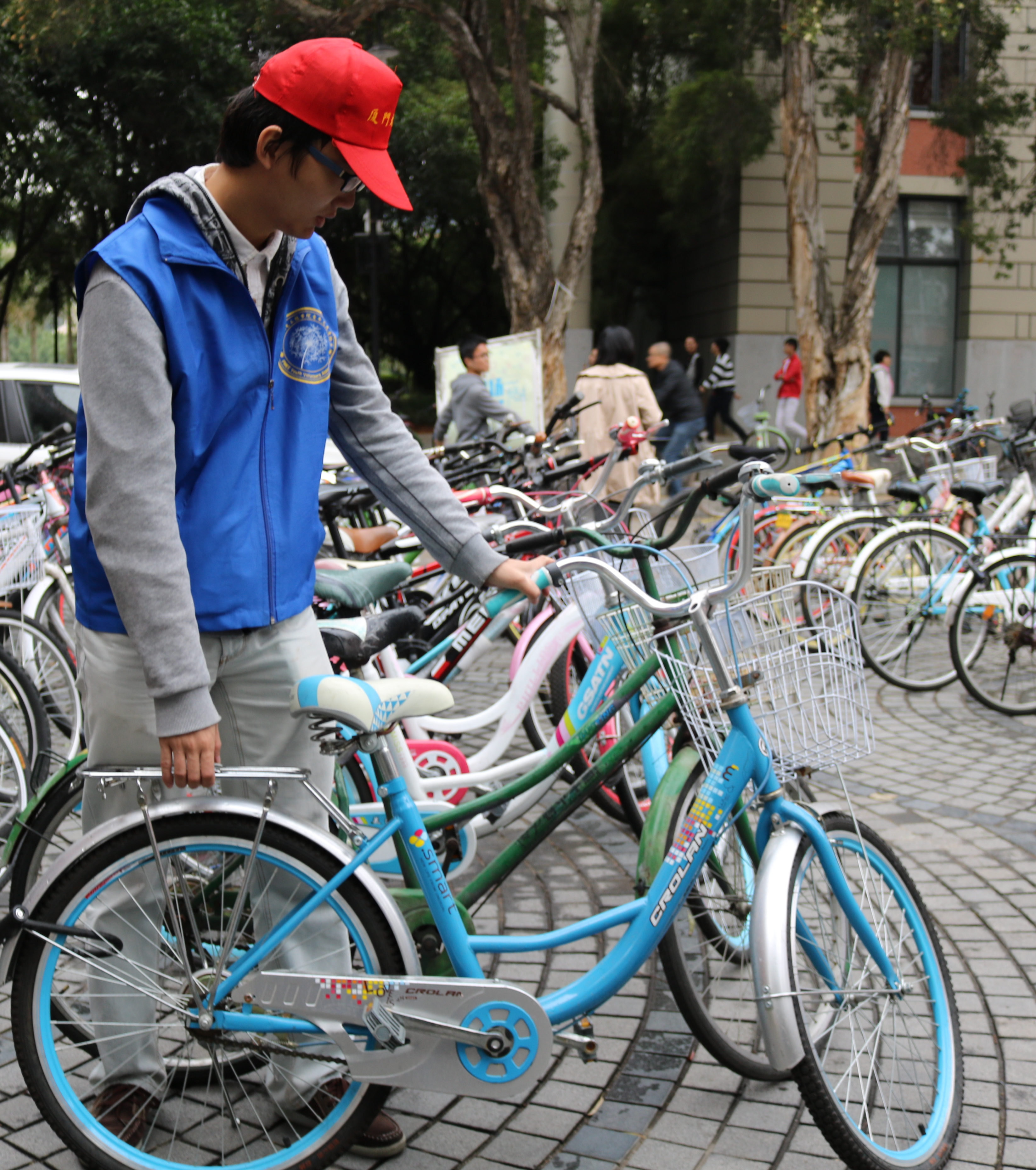 参与“自行车整理”的志愿者主要负责南光餐厅周边的自行车整理,活动旨在劝导并帮助前来餐厅吃饭的同学将自行车摆放整齐,避免因自行车杂乱占道而影响师生们出行。我校学生自行车的数量庞大,于是“自行车乱停放”现象也始终难以完全制止,如何规范大学生自行车停放,也成了学校面临的主要问题之一,若将乱停放的自行车放任不管,势必会给师生们造成很大的麻烦,也严重破坏校园的形象,所以“自行车整理”志愿服务活动不仅能够维护校园形象,更能便利于广大师生。如今,在志愿者的辛勤付出以及同学们的自觉配合下,南光餐厅前的自行车摆放逐渐规范化,同学们也不必担心一顿饭结束后看着自己的自行车被困在重重的自行车屏障中无法“自拔”了。