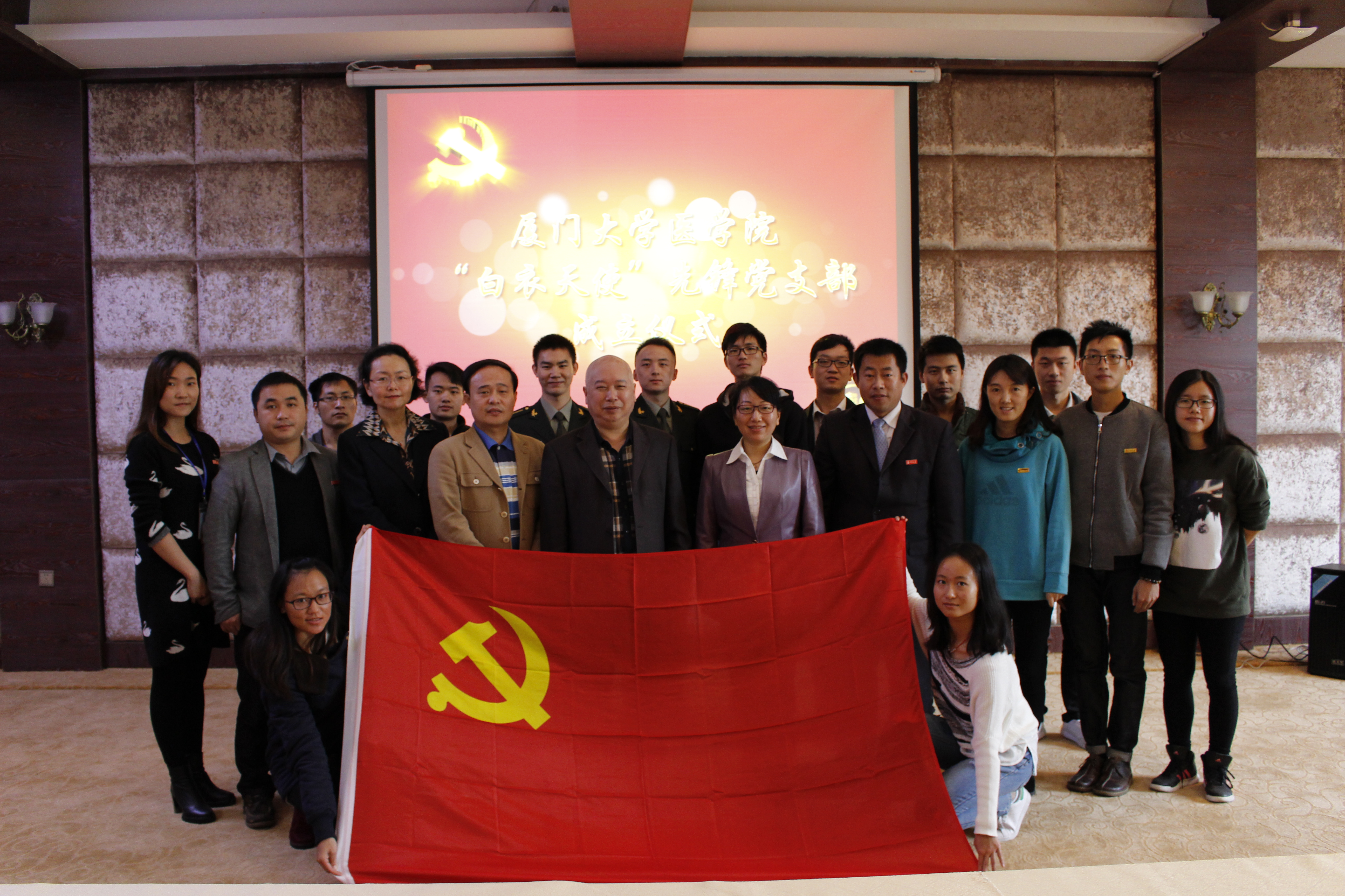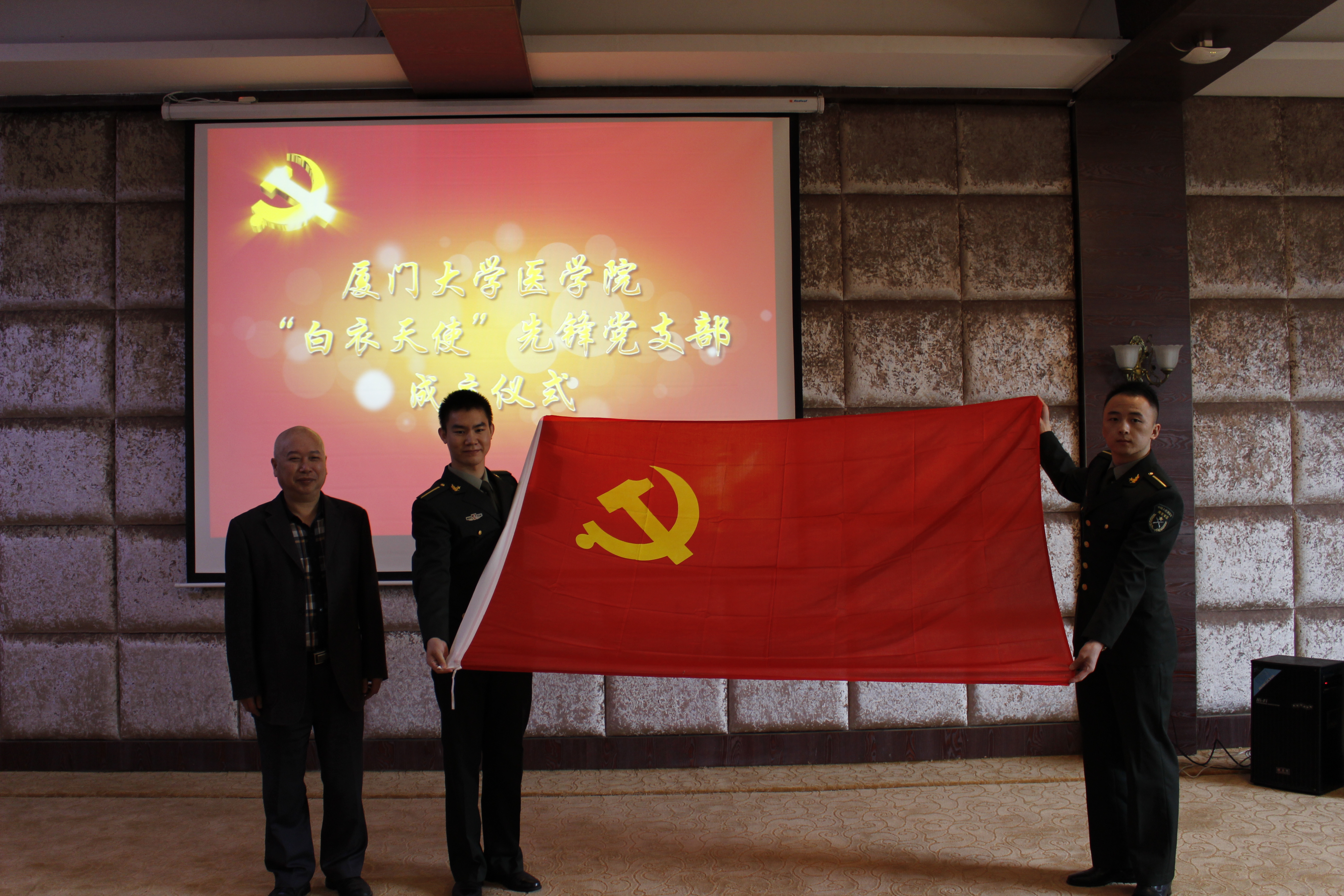 12月24日10时,厦门大学医学院“白衣天使”先锋党支部成立仪式在医学院成义楼报告厅顺利举行。校党委组织部副部长廖志丹,院党委书记邵鹏飞,院党委副书记马龙、杨建中,党委秘书申东杰,各年级辅导员及“白衣天使”先锋党支部全体党员参加了会议。会议由院党委副书记马龙主持。