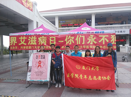 12月1日中午,由共青团厦门大学医学院委员会主办、厦门大学医学院青年志愿者协会承办的“为爱而生,让‘艾’远离 ”世界艾滋病日大型主题宣传活动在厦门大学翔安校区一期食堂广场举行。活动吸引了200多名学生参与,取得了良好的宣传效果。