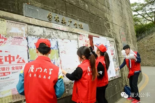 公共事务学院,就像这个名字一样,这里的学子都是怀一颗公心,去做服务人民的事,去真正关怀社风民情。清理广告栏这项志愿活动,寄托了大家对公共领域的观察与情感的寄寓。清理小小的广告栏,只是公事学子对“兼济天下”的小小表达。在实现理想的道路上,公事人还在前行,也未曾止步,就让“志愿”成为我们的习惯!