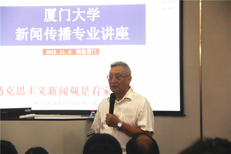 出席本次讲座的嘉宾还有省委宣传部新闻出版处处长、记者工作处处长、省记协秘书长叶得盛、厦门大学党委宣传部副部长、新闻系副教授苏俊斌,厦门大学新闻传播学院党委副书记林盛铨、聂鑫。