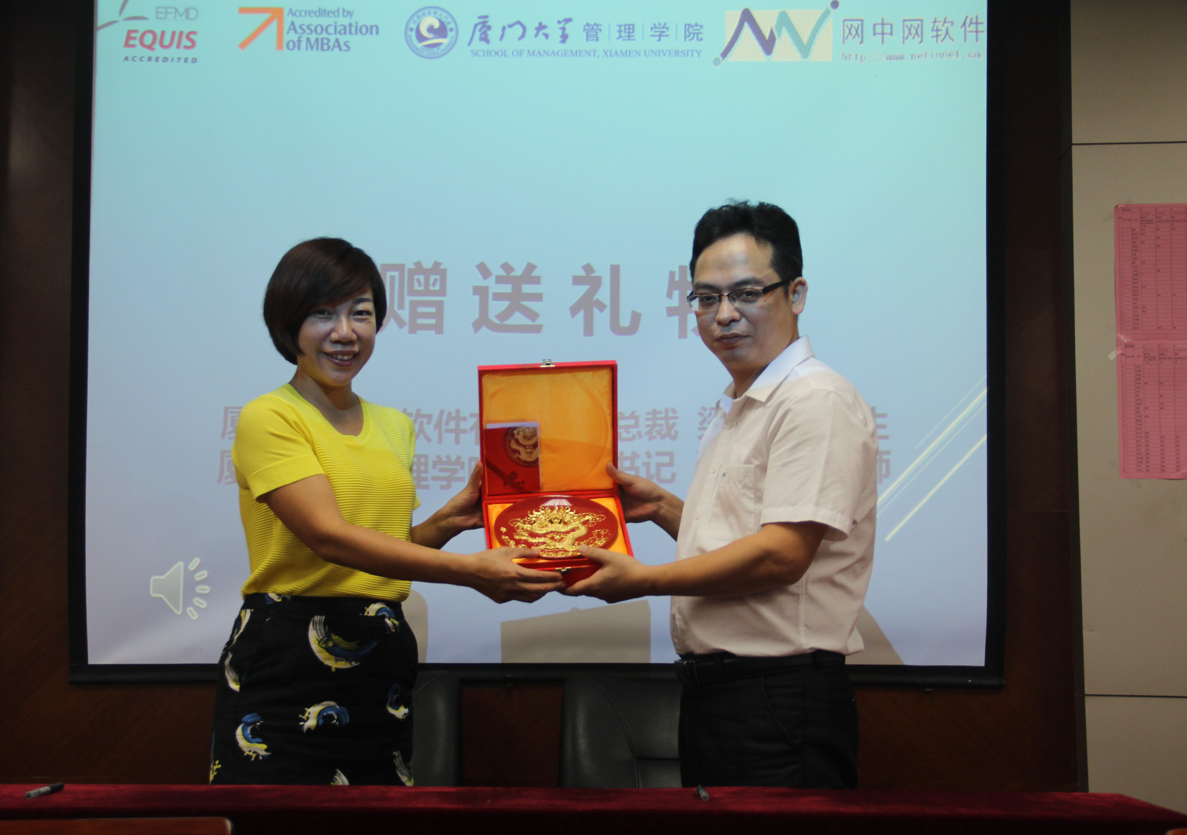 随后,厦门网中网软件有限公司总裁梁华与学院党委副书记洪秋霞互赠礼物。学院党委书记沈维涛宣布2015年厦门大学“网中网杯”财务决策全国十强邀请赛正式开幕。