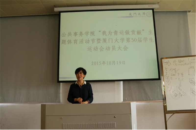 10月19日,公共事务学院“我为青运做贡献”主题体育活动节暨厦门大学第50届学生运动会动员大会在成智楼108举行,学院党委副书记赵晓慧做动员讲话。
