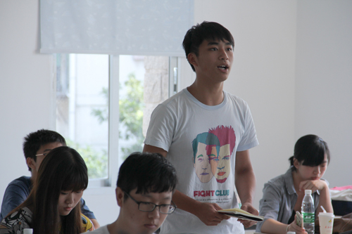 英语系主任杨士焯则谈起自己2009年在英国一个人熬夜看阅兵式的经历。“那时候的兴奋,今天才加以表达出来。国家需要赶紧强大起来,落后就要挨打。”他鼓励同学们要把外语学好,将来为社会作贡献,为国家作贡献。“我们已经做了一些了,后面的事情要你们来做。”杨老师如是说。