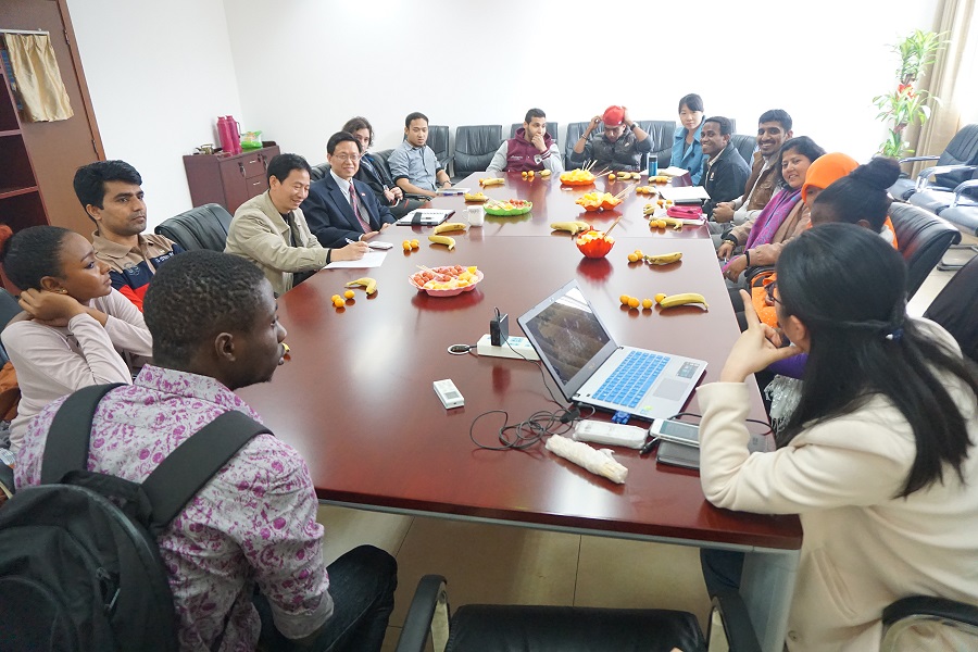 随后,同学们交流了各自在中国的学习、生活情况,也谈到了遇到的一些问题并提出了建议。比如,建议食堂可以提供更多不同口味的食物,尽可能能够满足不同地区和民族习惯要求,尤其对清真食堂方面希望给予更多方便;有的同学认为上课时间较多、参与课题研究工作的机会相对偏少,并且希望学院实验室同步使用英文标示,尤其是化学试剂药品有许多还是用中文标示,对于他们来说存在理解困难;有些课程之间交叉重复比例高;互联网使用方面还存在一些不便等等。面对这些问题,李庆顺及在场老师与同学们做了认真沟通,并表示学院将尽可能地解决他们遇到的问题,同时及时向学校反映相关情况,努力争取学校的支持和帮助。
