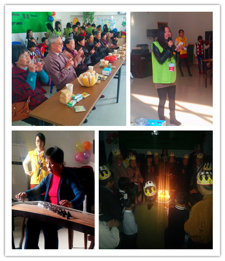 “爷爷奶奶们,祝你们生日快乐!”志愿者倪馨和林瑨洁为老人们演唱了一首《甜蜜蜜》,将大家带入甜蜜的回忆中,志愿者王慧敏的钢琴演奏《星空中最亮的星》更是令人陶醉。爷爷奶奶们也纷纷上台跳起了舞,舞姿之曼妙丝毫不减当年。有位老人家更是从家里搬来古筝,现场连奏了三曲,大家纷纷称赞“余音绕梁”。