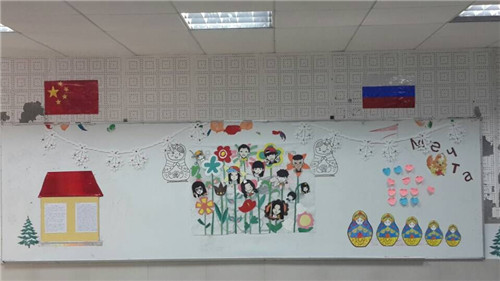 此外,获得三等奖的英专四班、日专及法专一班与获得优胜奖的俄专、英专一班、英专三班的教室装扮都可谓异彩纷呈,各有千秋。英专四班的教室后墙上的“Us four, for us”和随处可见的文明小贴士表明了他们“我为人人,人人为我”的和谐氛围;日专一、二班无处不在的樱花元素和手绘漫画仿佛令人置身于那个美丽的“樱落之都”;以法语诗歌、电影海报等为特色的法专一班文化气息浓厚,清新的绿色植物更是为教室增添了点睛之笔;而俄专班级用套娃和雪花打造的“北半球相遇”、英专一班鸟语花香的“世外桃源”、英专三班的“英语美文角”也令人过目难忘。