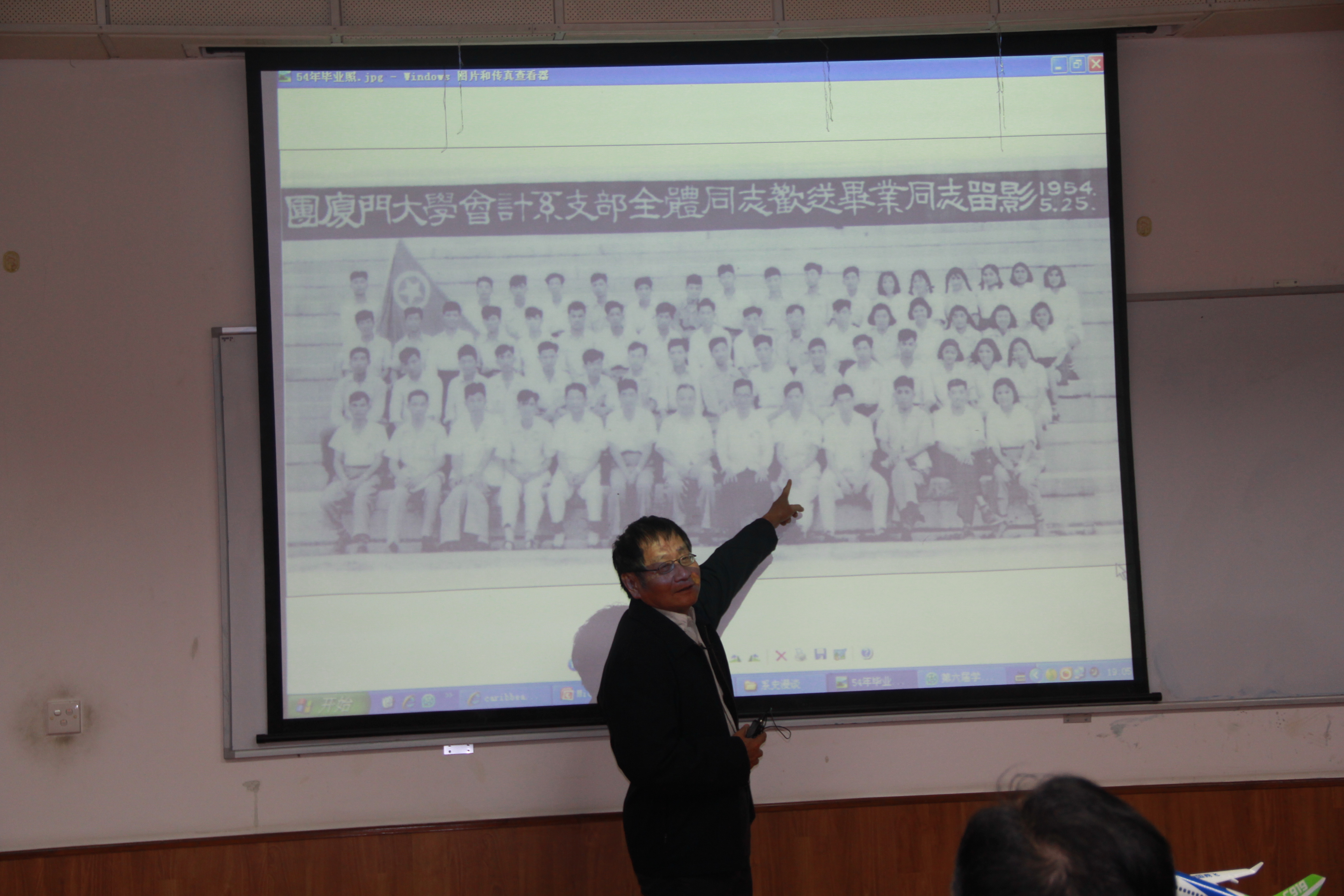 然后,由汪老师带领同学们一起搭乘时光机回到会计系最久远的岁月。娓娓道来中,汪老师不仅给同学们讲述了一个官方的会计系史,也用幽默风趣的语言为同学们描绘了一个别样的会计野史。汪老师如数家珍的介绍了厦大建校以来的历任校长生平,以及民国时期厦大会计系老师们的学历背景,在汪老师心目中,这些前辈为厦大会计系的奠基与壮大起了不可磨灭的作用,尤其是葛家澍、余绪缨两位泰斗。也正是这些学者、前辈的艰苦奋斗才铸就了会计系如今的辉煌。聆听着汪老师的讲述,同学们仿佛也亲眼见证了厦大会计系从默默无闻到全国顶尖专业的历程,更加感受到了厦大师生保家卫国的赤子之心,更明白厦大一步步成为南方之强步伐的艰辛。最后的提问环节,汪老师向同学们介绍了厦大史上第一位会计学教授及大师兄,并生动地描绘了他们的风采。同学们和汪老师一起回忆当年,忆往昔峥嵘岁月稠。恰同学少年,风华正茂;书生意气,挥斥方遒。指点江山,激扬文字,粪土当年万户侯。